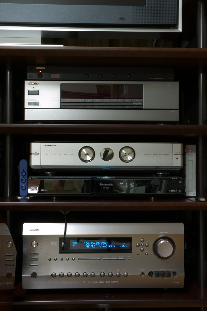 S端子用に JX-S1000 、コンポーネント用に HDS4.2 を使ってます。 JX-S1000 はS端子、ビデオ端子、アナログ音声の9入力7出力のセレクタです。 もうディスコンになっていますが、レガシーデバイスを繋ぐには非常に 便利なセレクタです。