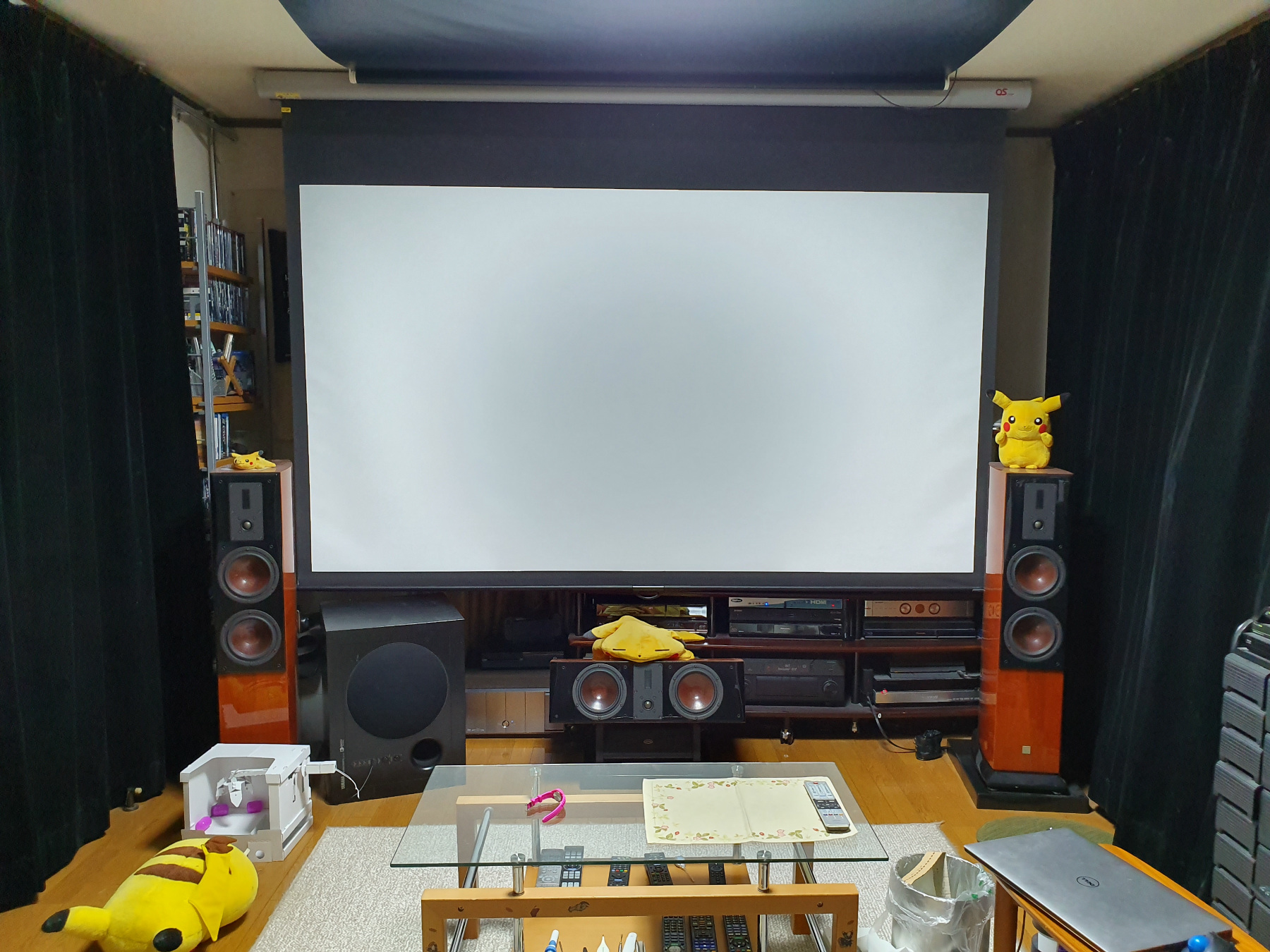 OSスクリーンの OSスクリーン の A1-110-WF202 (110インチ、ピュアマットIIplus)を使ってます。