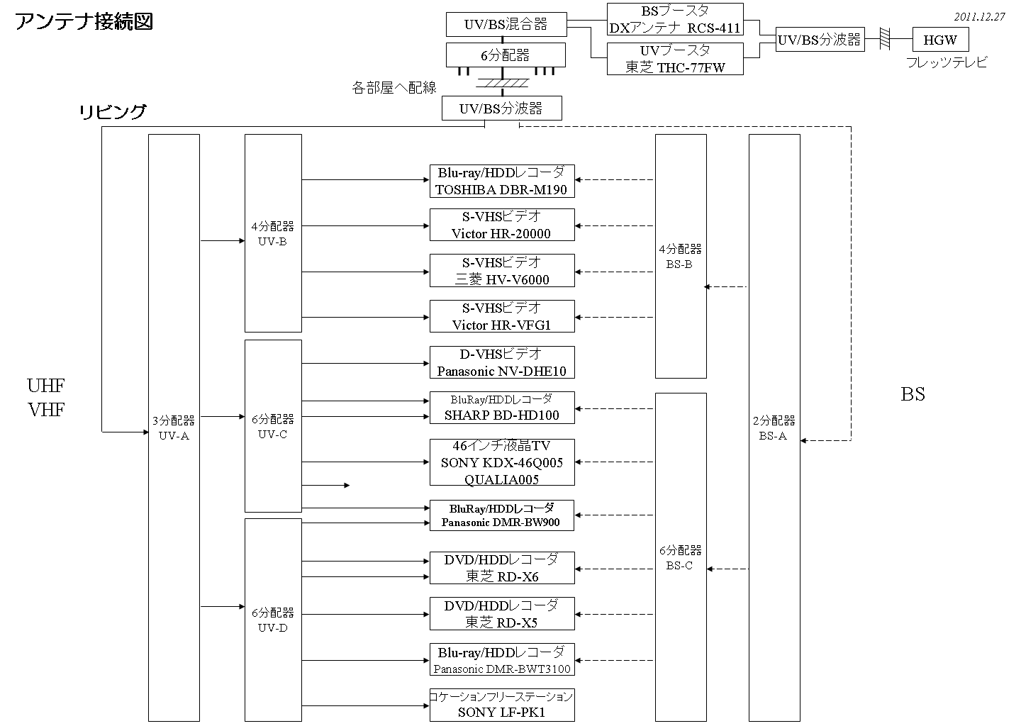 | コンポーネント(12m) | 自作 | Maspro S5CHFBとカナレ製RCAプラグ(F-10)を使って自作 |