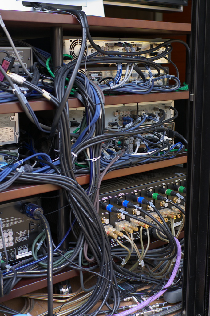 ですので、プロジェクタには12mの5Cケーブル5本、3Cケーブル3本、DVIケーブルが1本の