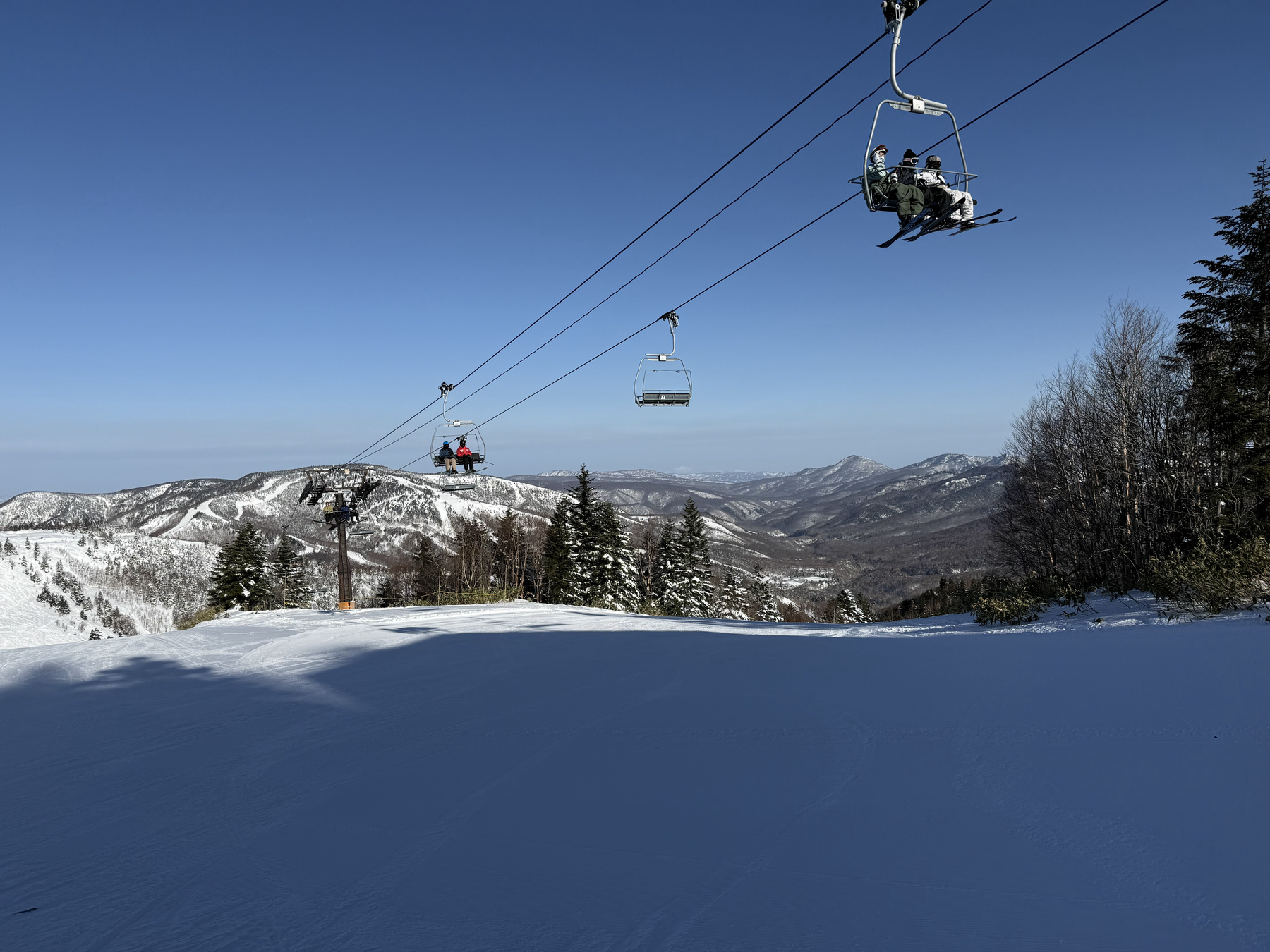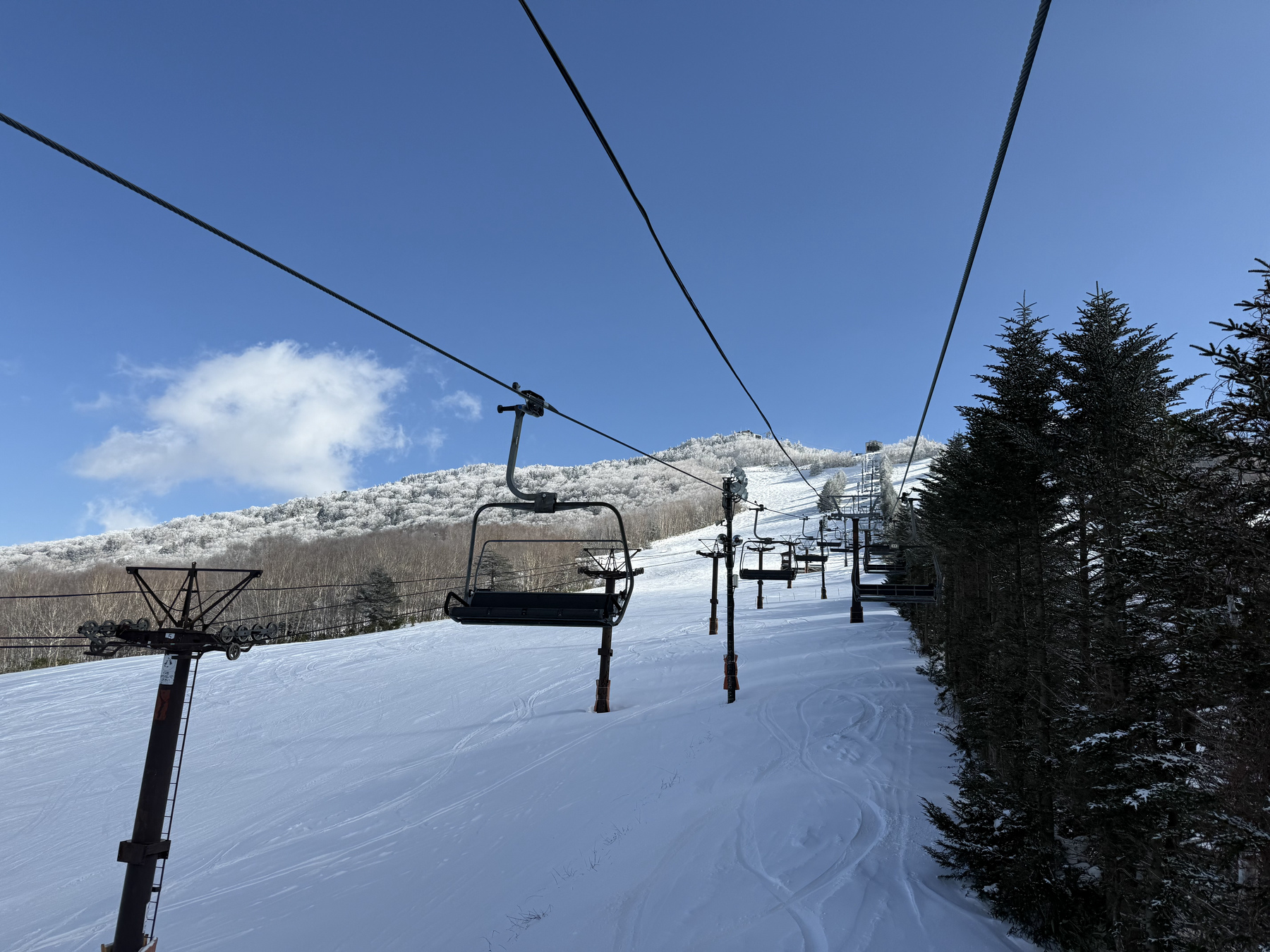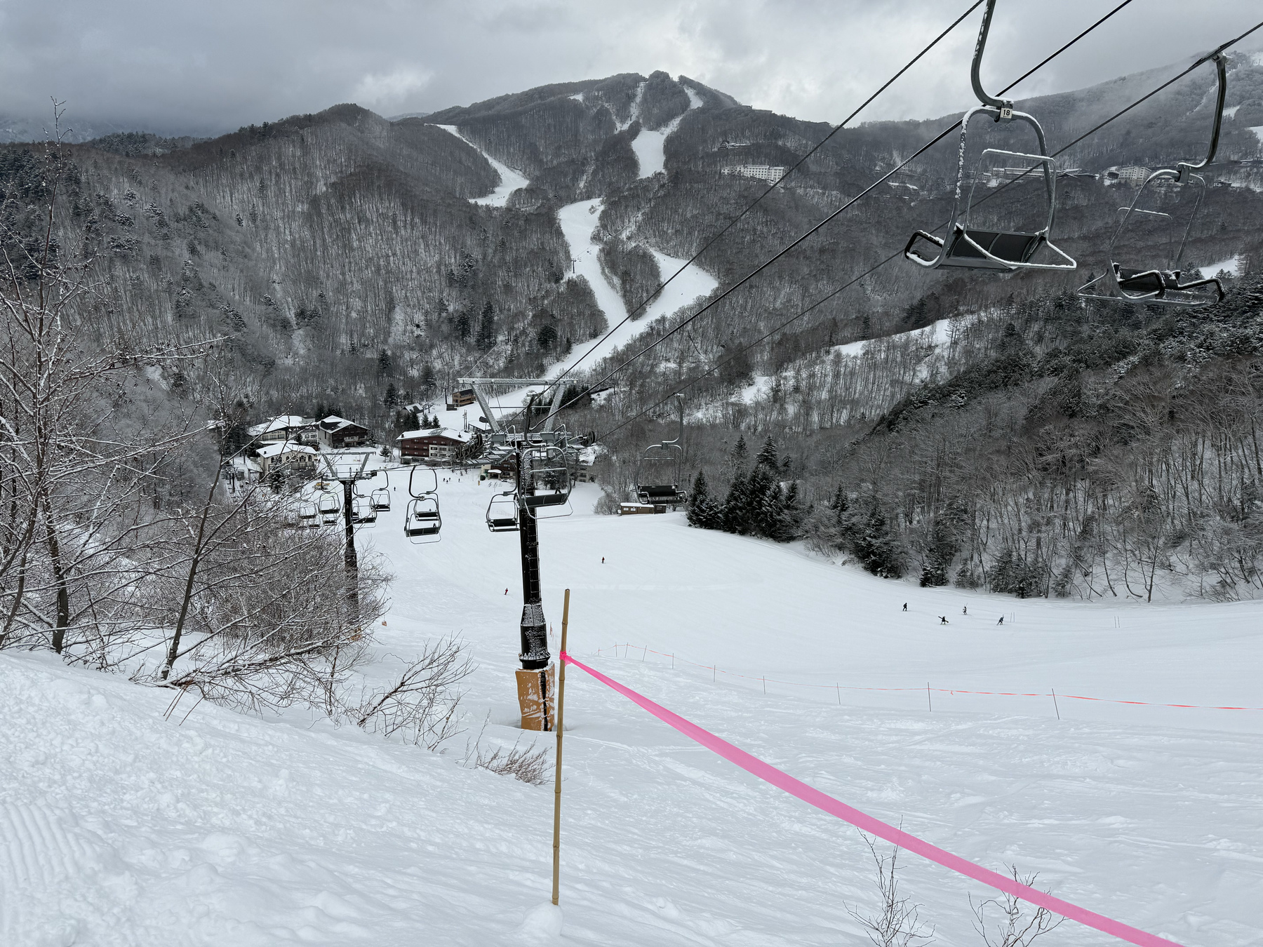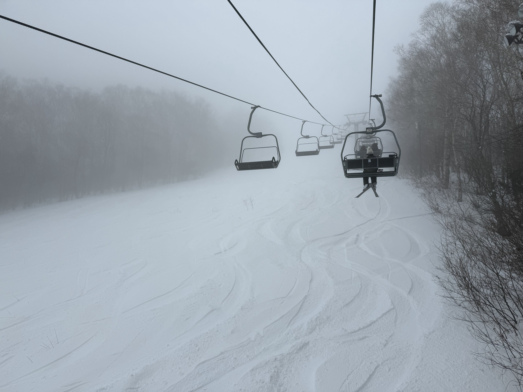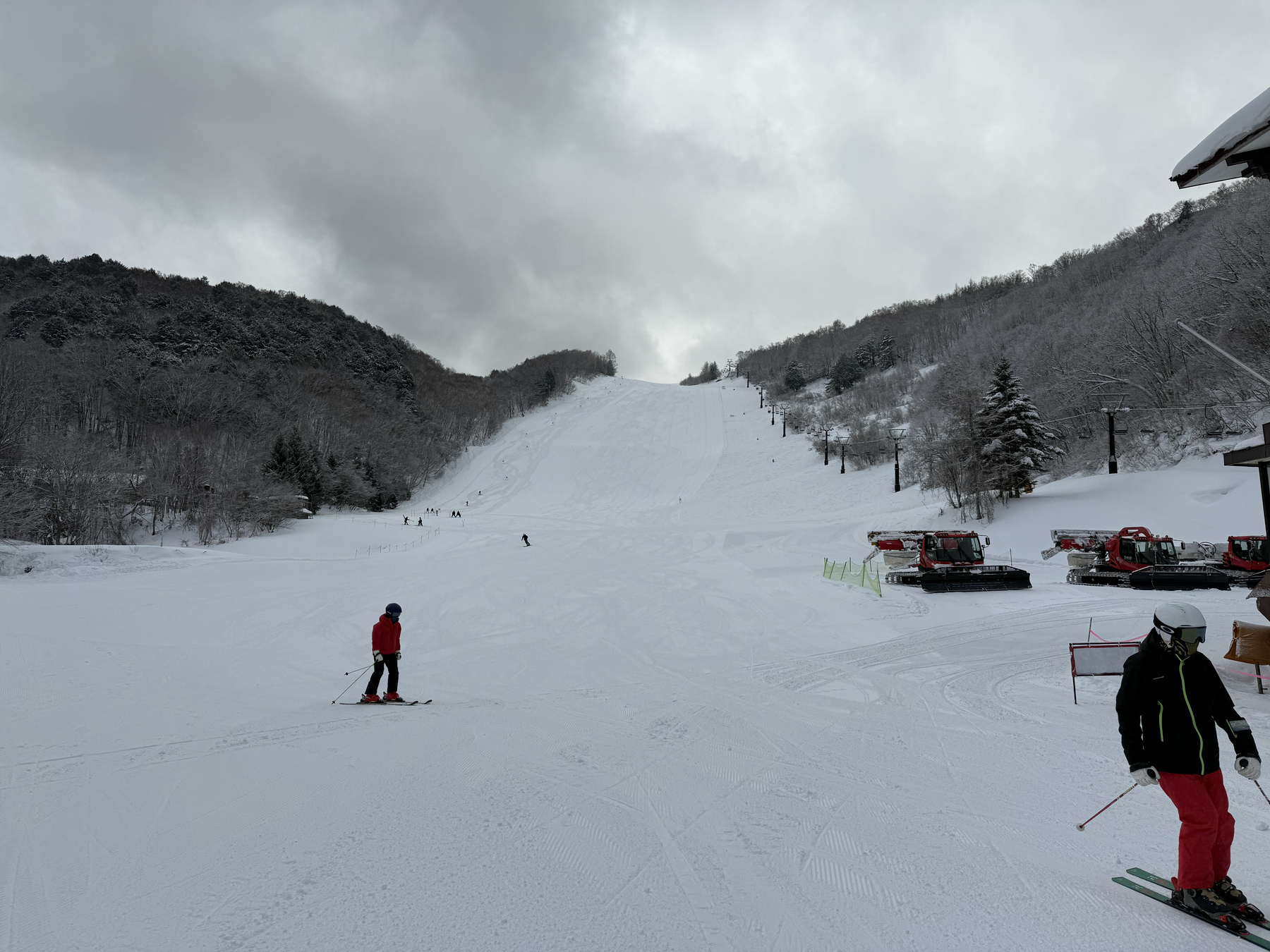 スキー開始。曇っているが視界はいい。ただ、気温が高い。