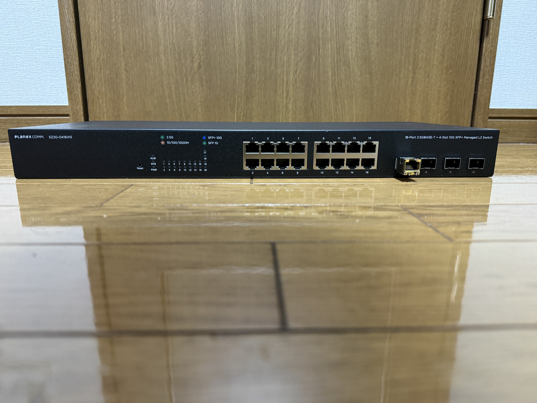 メインSWをPLanex SZ2G-0416IXS(amazon)に更新してみた。フルマネージドSWで、電源内蔵、ファンレス、2.5GbEが16ポート、SFP+が4ポート、VLAN対応、LAG対応、SNMP対応の割りにはお値段も手頃で、ご家庭向けに必要な機能を備えている。