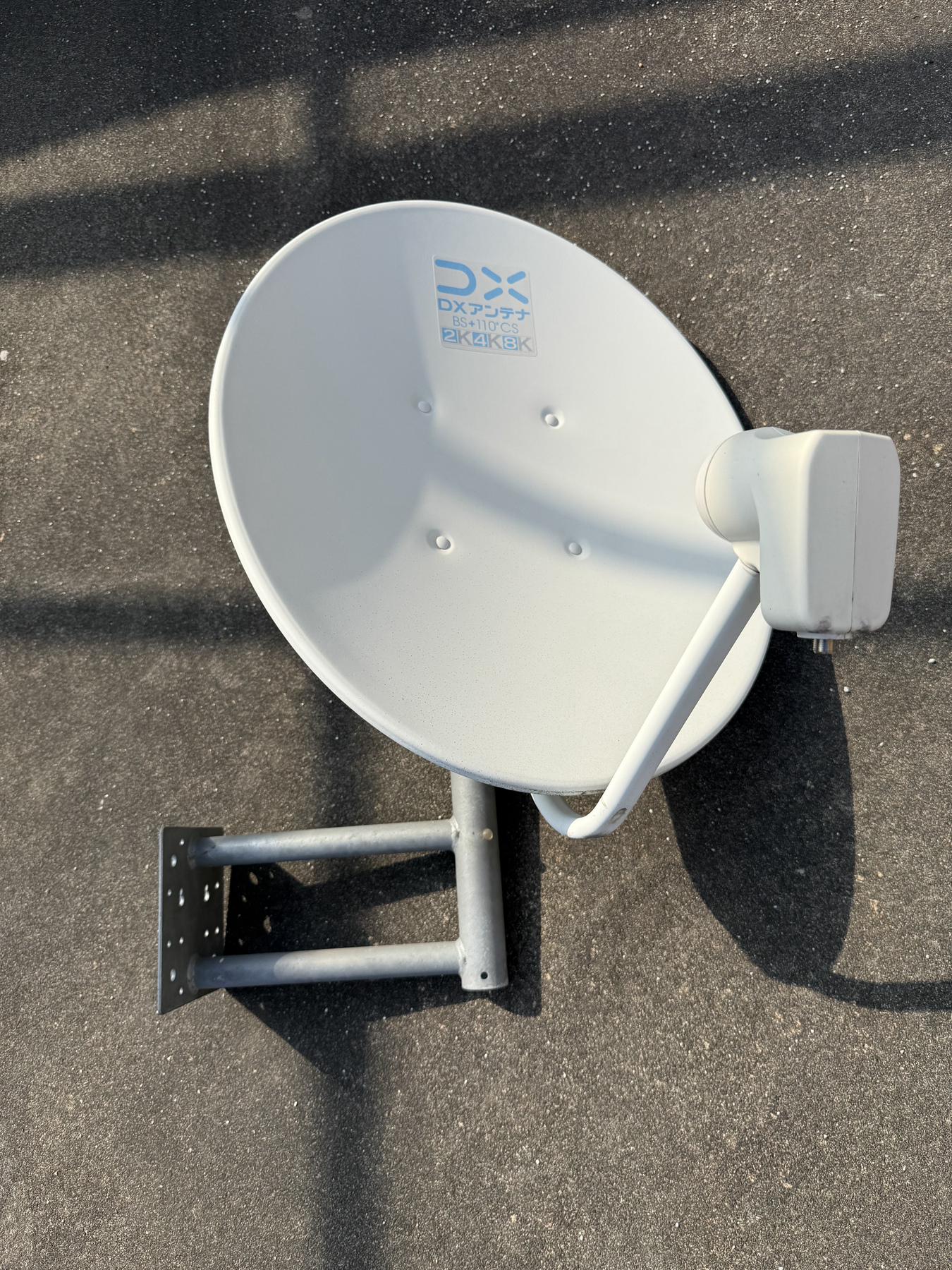 スカパー(CS124,128)とは別にBS/CS4K(CS110、左旋波対応)の2つのパラボナアンテナを建てていた。4Kの左旋波が終わったので一つ降ろした。