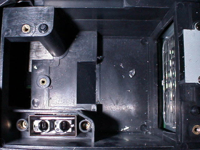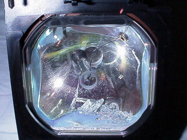 ぐはっ。ランプが粉々になってるよ。 で、ガラス破片が本体にも入ってしまっているみたいだ。