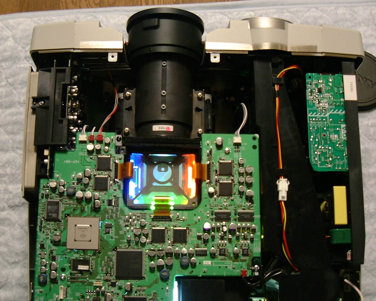 再びプロジェクタをバラしてエアスプレーで掃除。