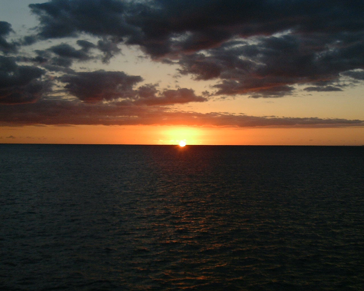 夜は 「Star of Honolulu」でサンセット ディナークルーズ。 なんか大量の日本人が船に乗り込むのでかなりヒドい状態なのではないかと 心配してしまう。 しかし、みんなは階段で登って3階に行けと案内される中、 自分らはエレベータで4階に誘導される。 どうやら、一番いいコースらしく、最上階で20人ほどだけのようだ。