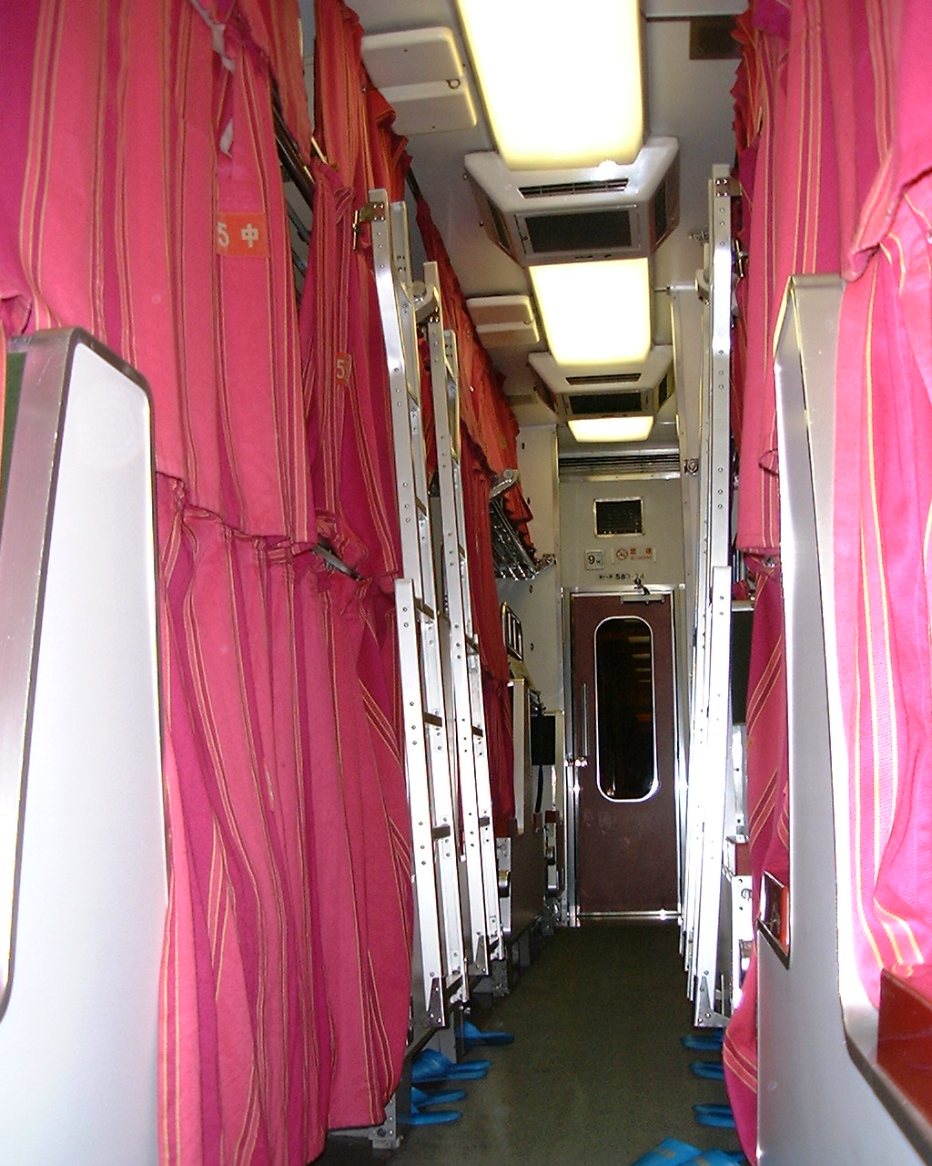 今回は寝台列車での移動。 ベッドが3段あるので、天井が狭い。