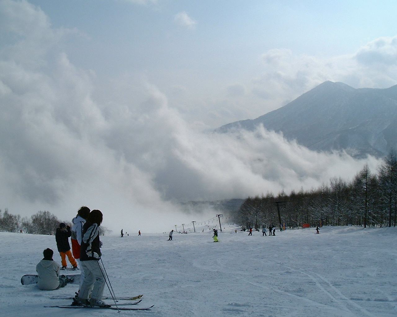 滑っていると妖しい集団を発見。
