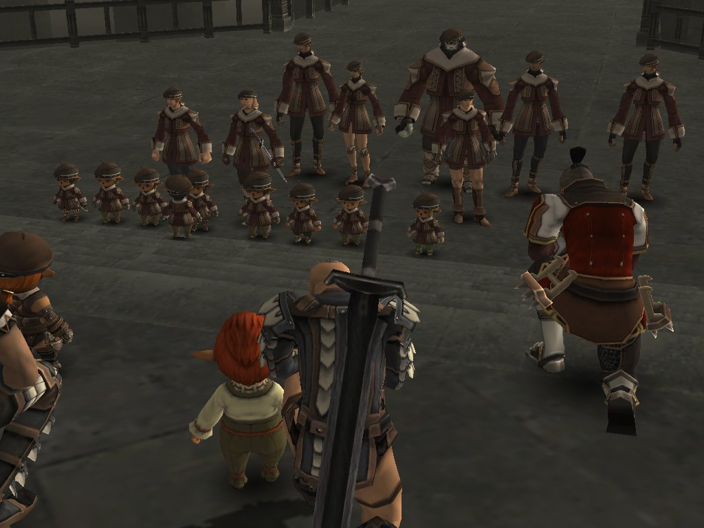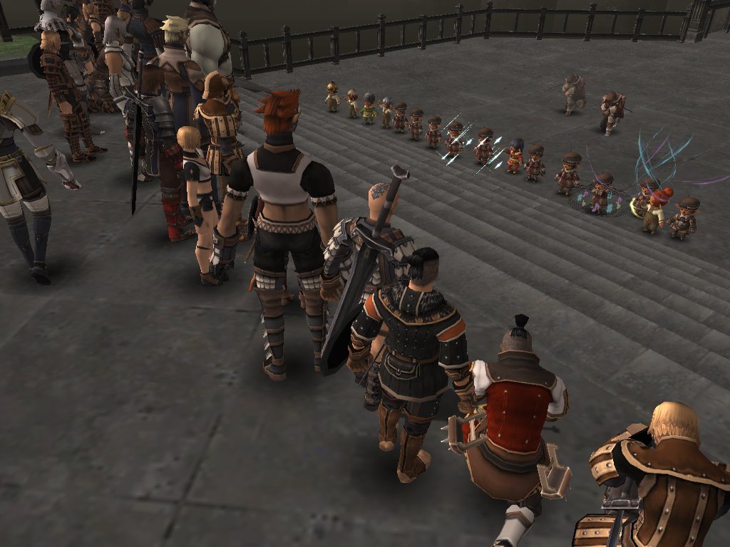 FFXI。 忍者クエについてきて欲しいというので、コンシュに着いていくと なんと行列が出来てますよ。 40人以上の人が1列に綺麗に並んでますよ。 まると、イベント会場の女子トイレみたい...