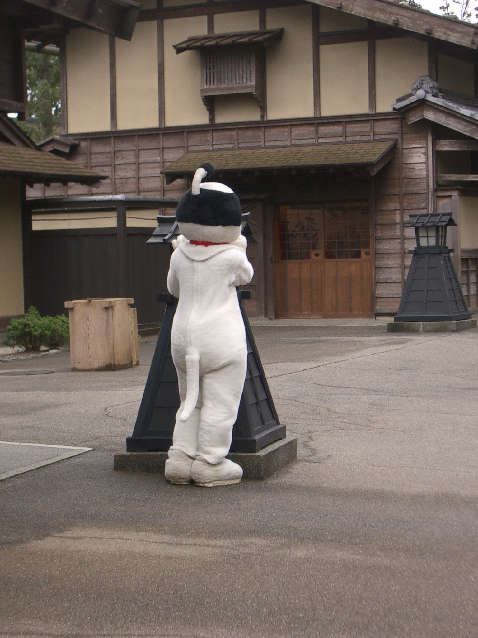 雨で天気が悪いけど、 「加賀百万石時代村」へ。 遠くを見つめるにゃんまげを見つめてみたり。