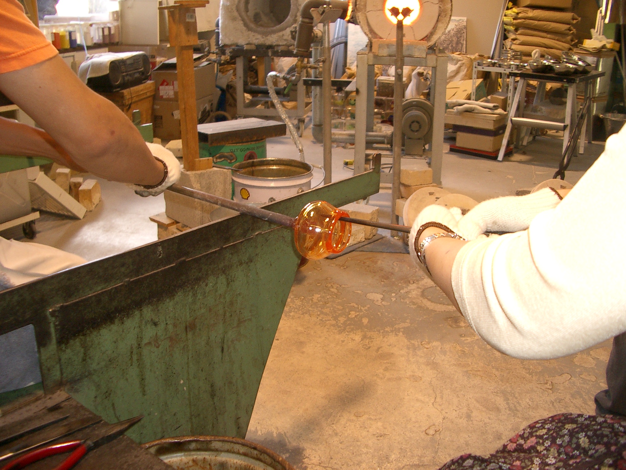 「ゆのくにの森」へ行く。 吹きガラスの体験コースをやったのだが、なかなか面白かった。