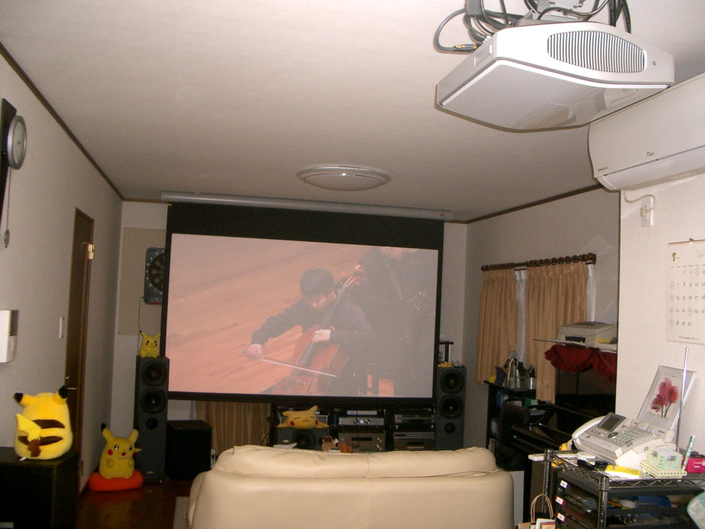 BD-HD100(HDMI出力) ↓ MonsterCable M1000HDMI DVI M-A(DVI-HDMI変換コネクタ) ↓ MonsterCable M500DVI-12M(12m DVIケーブル) ↓ AudioQuest DVI/HDMI ADAPTER(DVI-HDMI変換コネクタ) ↓ VPL-VW100(HDMI入力)