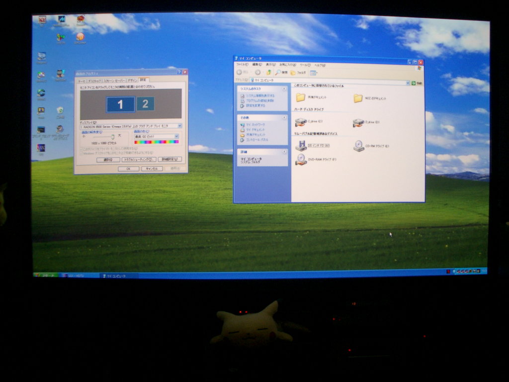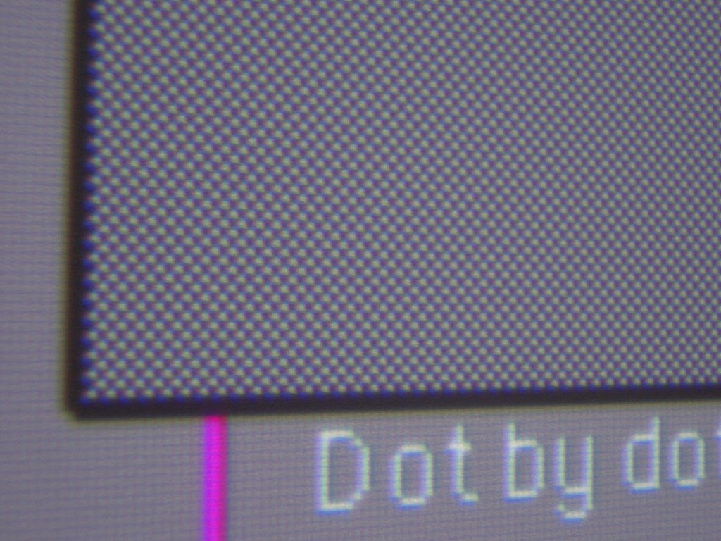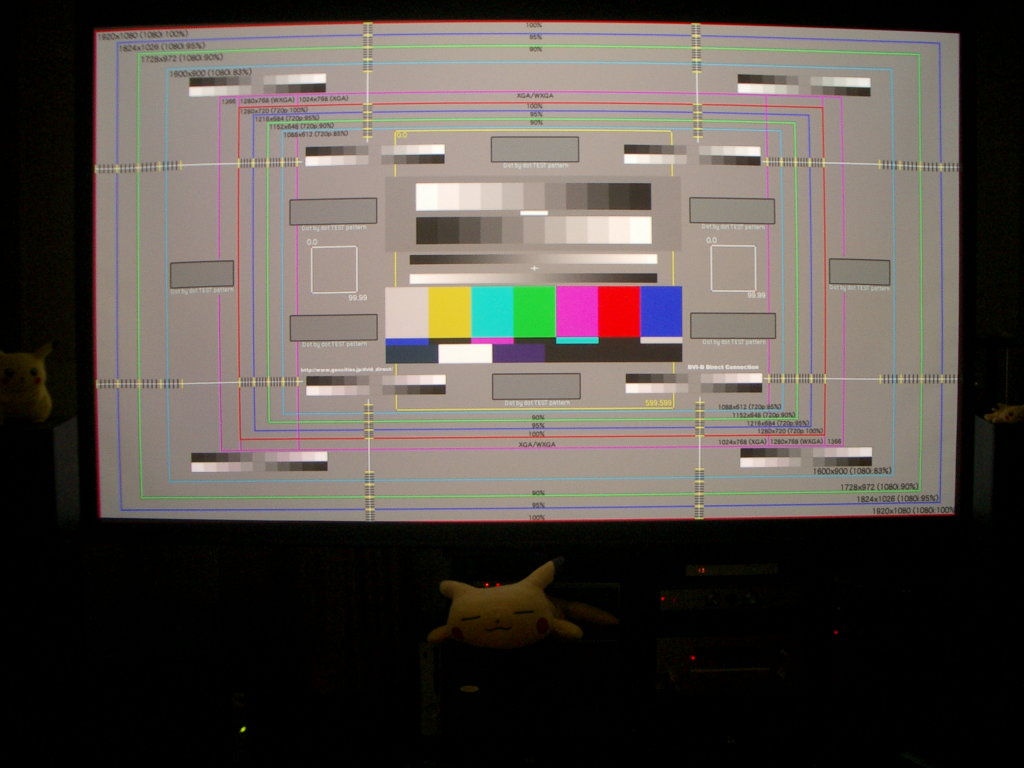 VPL-VW100にDVI-Dでパソコン(RADEON8500)を繋いでみた。 1080pを入力できるので、簡単にdot by dot表示できた。 VPL-VW100はDVI-D専用のケーブルしか刺さらないので注意が必要だ。 DVI-IだとアナログRGBのピンもあるので、その部分が邪魔して刺さらない。