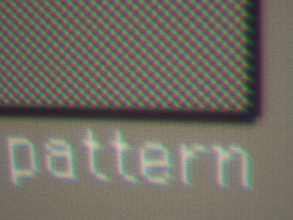 左端、やや左、右端のマトリクスの拡大写真。 右側にかなり色収差が出ている。