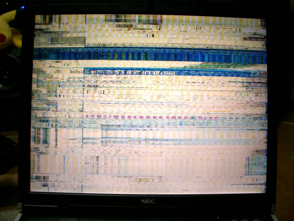 接触が悪いとこんな感じで画面がむちゃくちゃになる。 とっとと、新しいノートPCを注文するか。