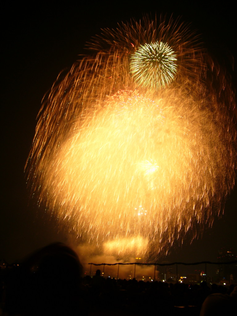 基本は花火モードで撮影して、最後の2枚だけは通常のモードにした。 そうしないと、余りにも明るくて、真っ白になってしまった。