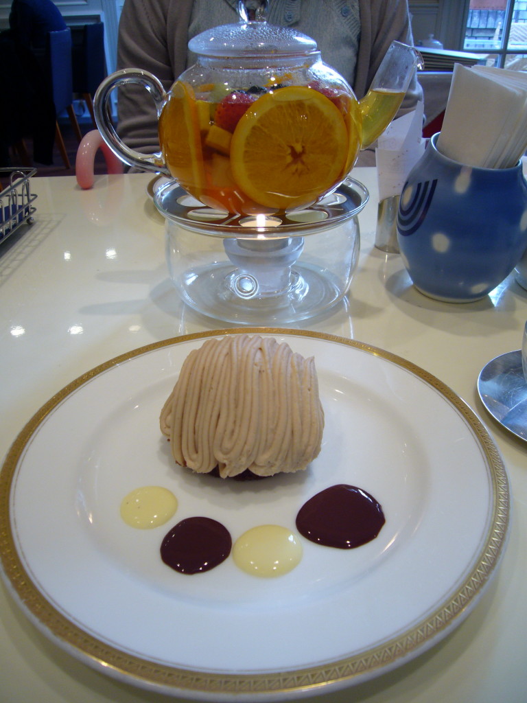 モンブランとフルーツティーを頼む。 フルーツティーはほんとフルーツで、最後の方はかなり甘かった。