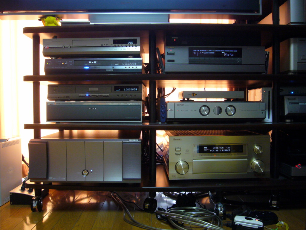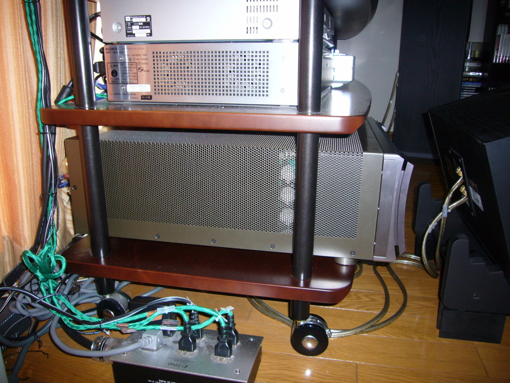 更に奥行きが60cmもあるのでラックからはみ出している。 丁度、RDA-7.1の真ん前にセンタースピーカーを置いているので、RDA-7.1は全く見えない状態になる。 電源を切るのを忘れそうだ。