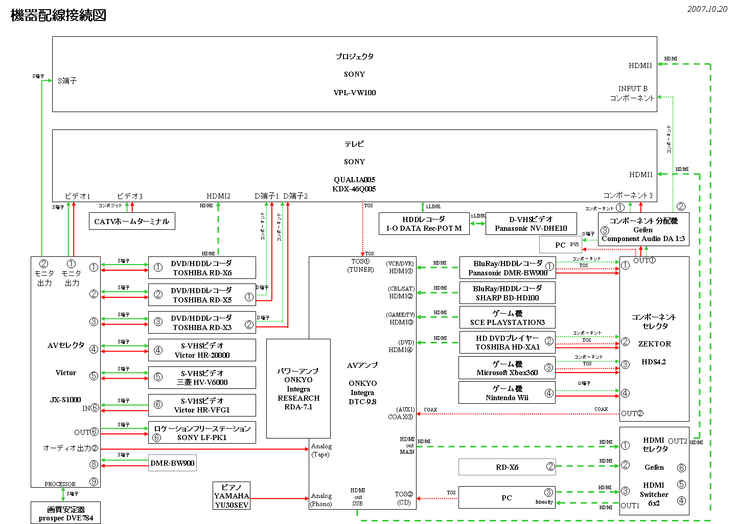 配線図はこんな感じ。AVアンプのHDMI4入力はすべて埋まってしまった。