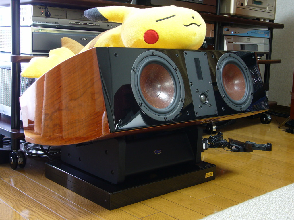で、早速センタースピーカーに設置してみた。 このスピーカーと同じくらいの24kgあるので、かなり比重が高い。