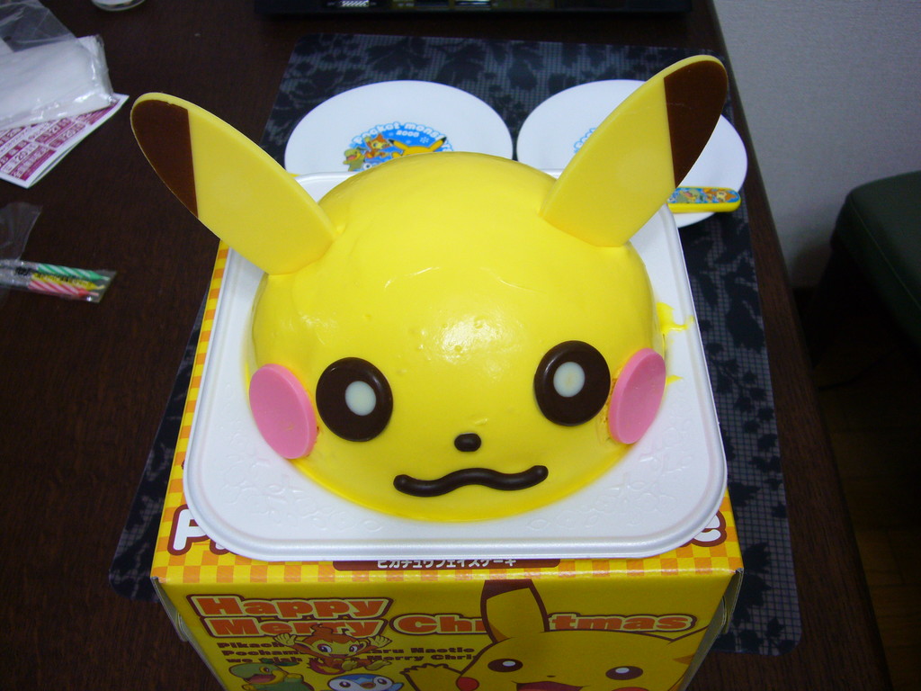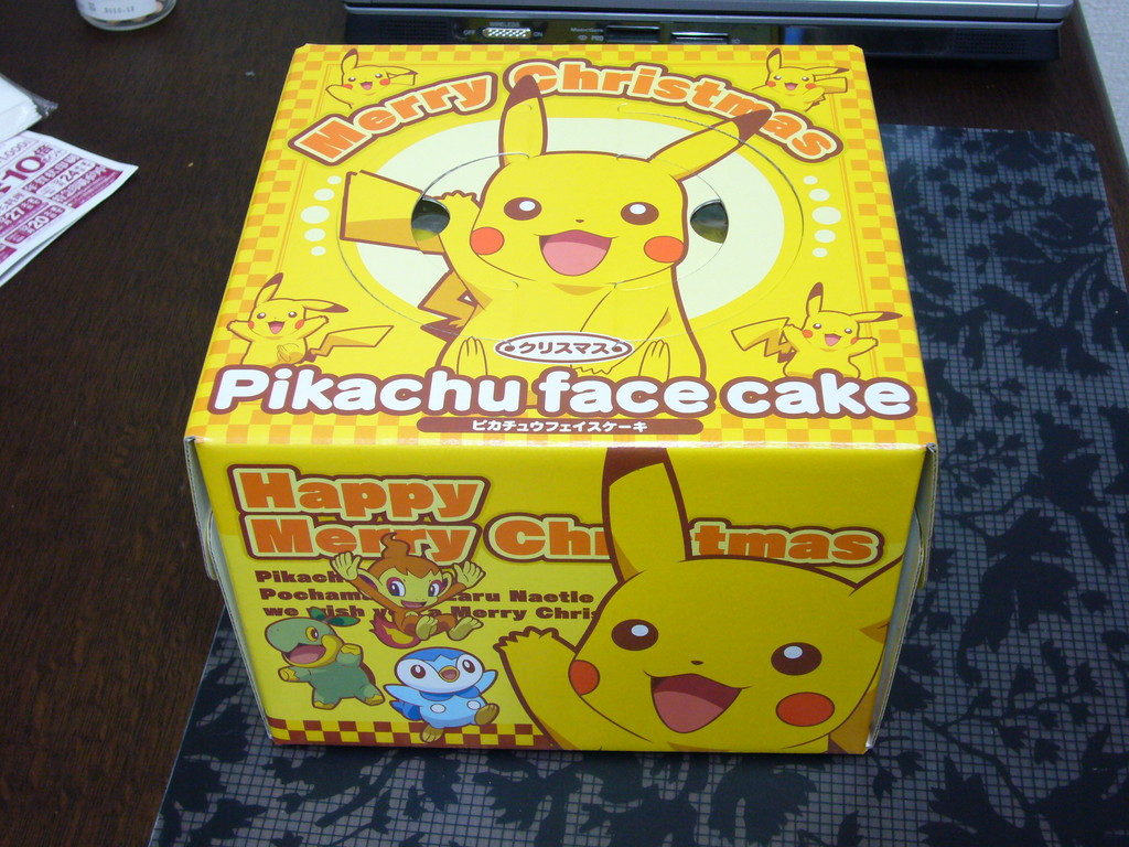 クリスマスケーキを買ってきた。 バランス良く貼り付けるのは難しい。