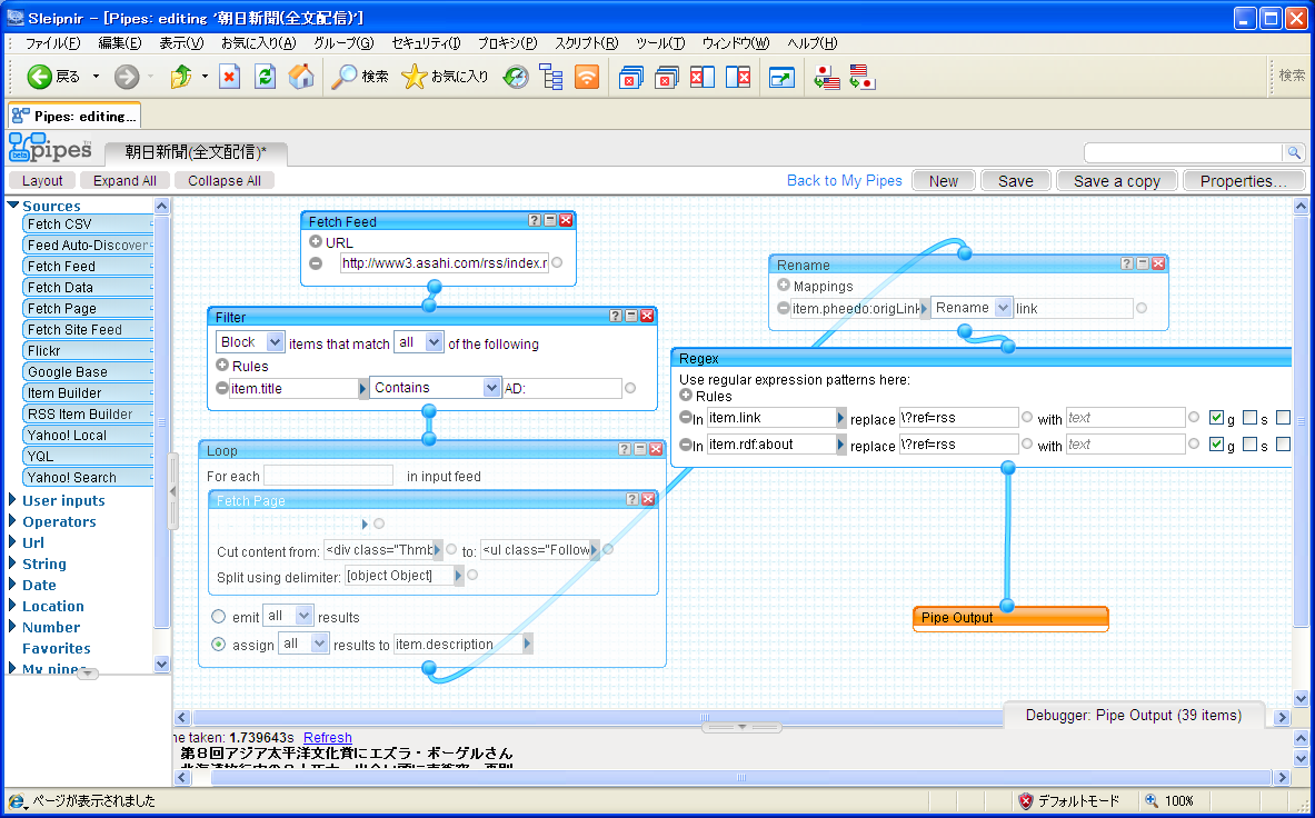 というわけで、「Yahoo! Pipes」を使ってみた。