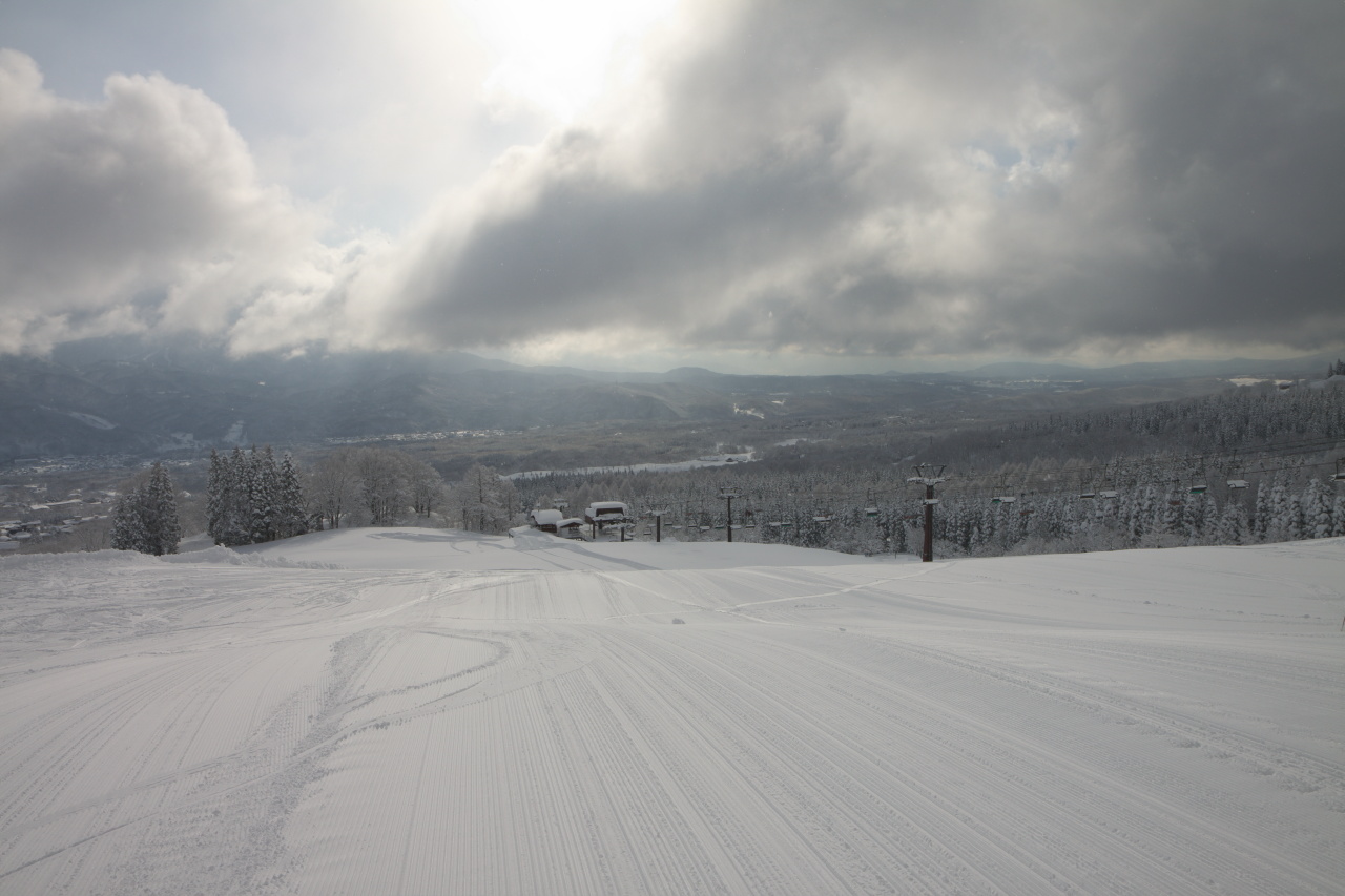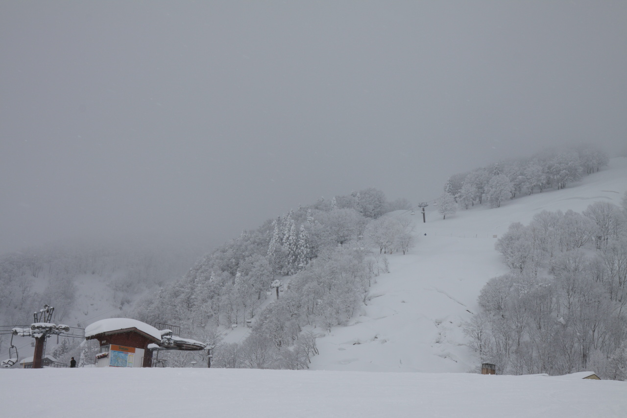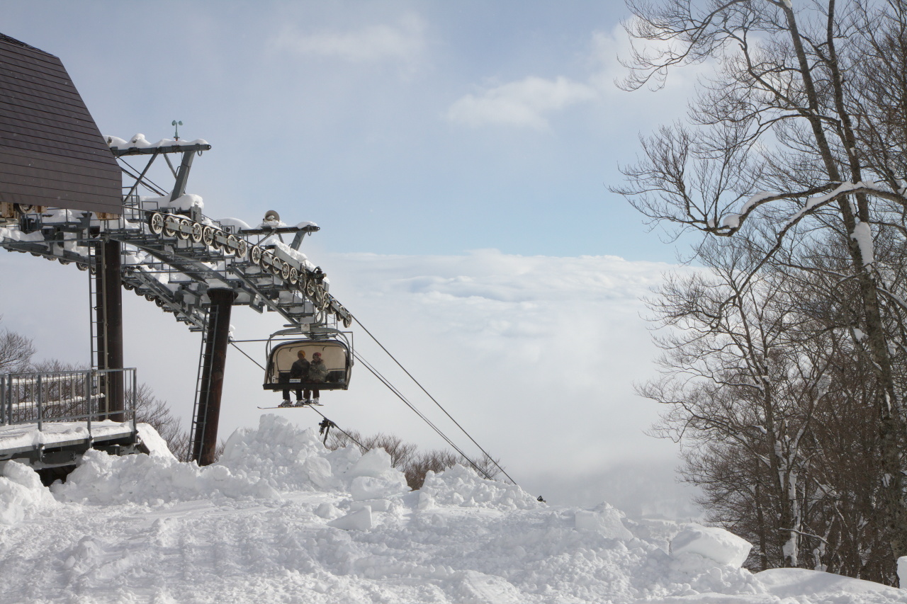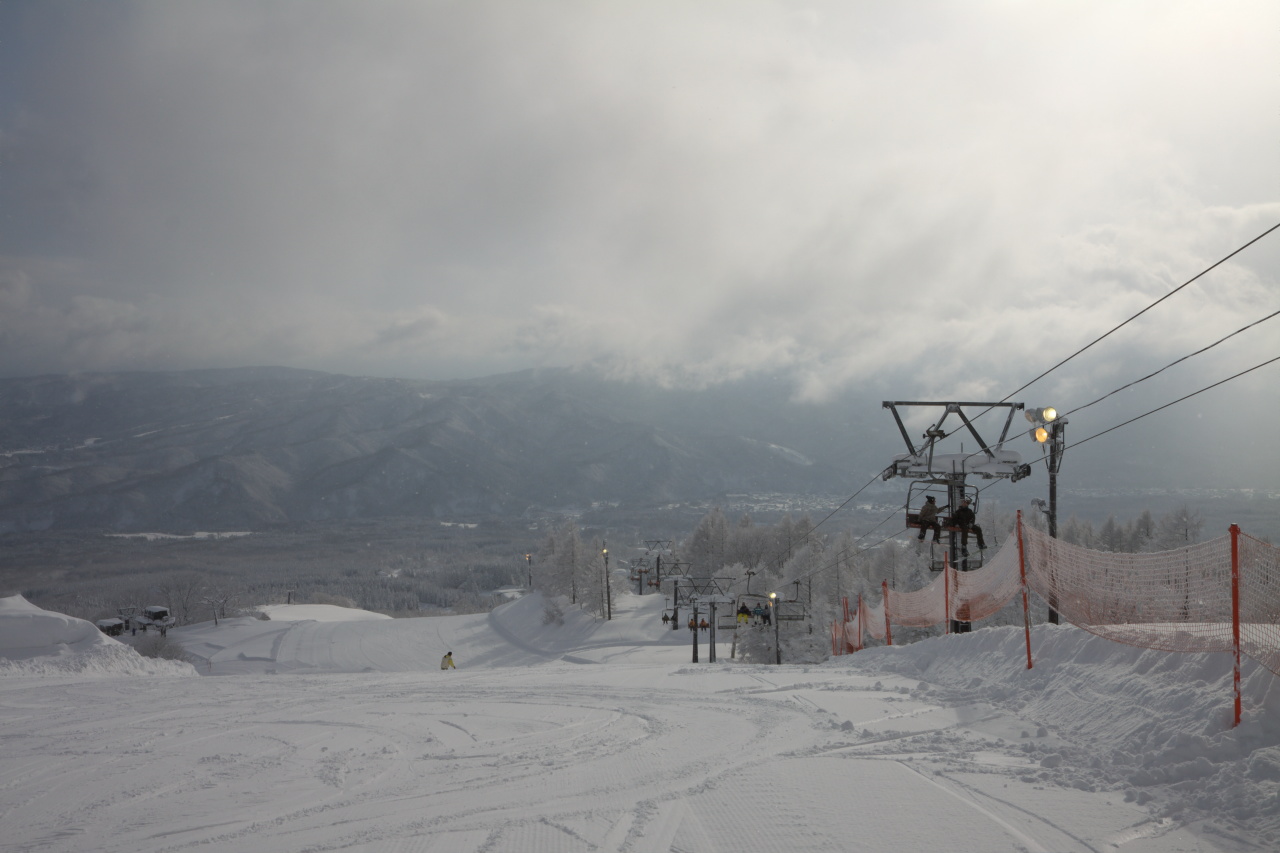 曇ってきたので、ちょっと気温が下がってきた。 金曜日ということもあって、止まっているリフトが多い。 確かに客も少ないし、学校の団体の高校生、中学生がいなかったら、 かなり少ないよな。