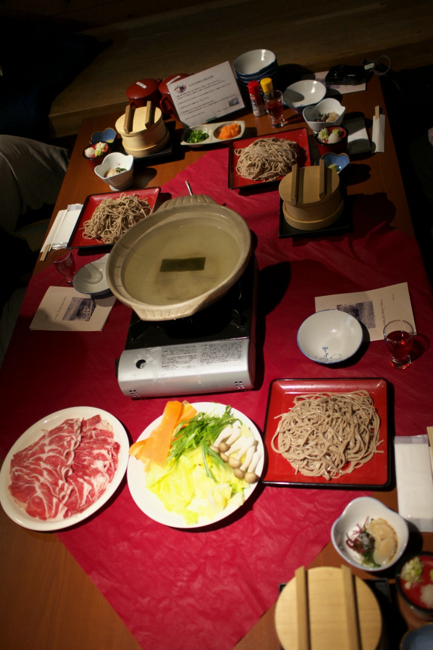 夕食はしゃぶしゃぶと蕎麦の食べ放題。