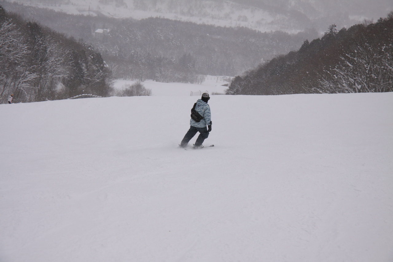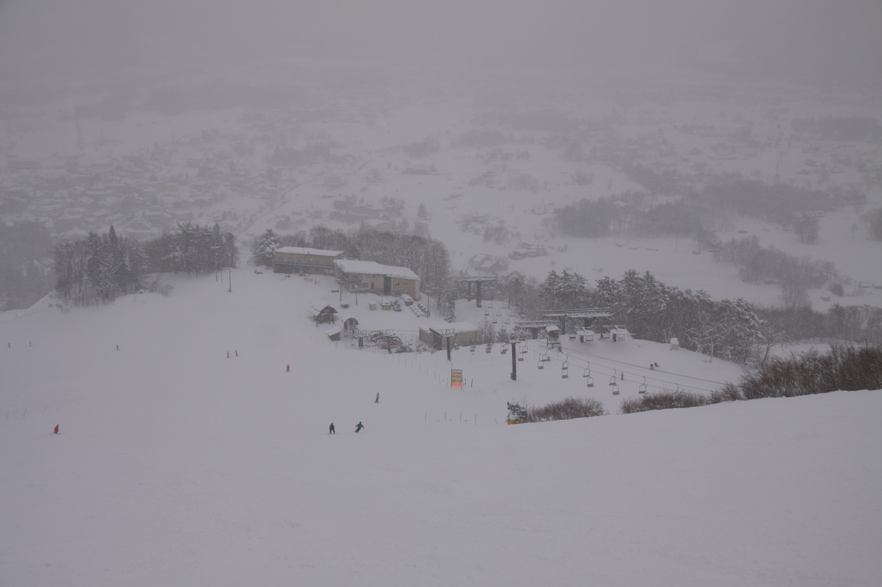 一番上のリフトのリフトが動いているので、天候が悪くなる前にいってみる。