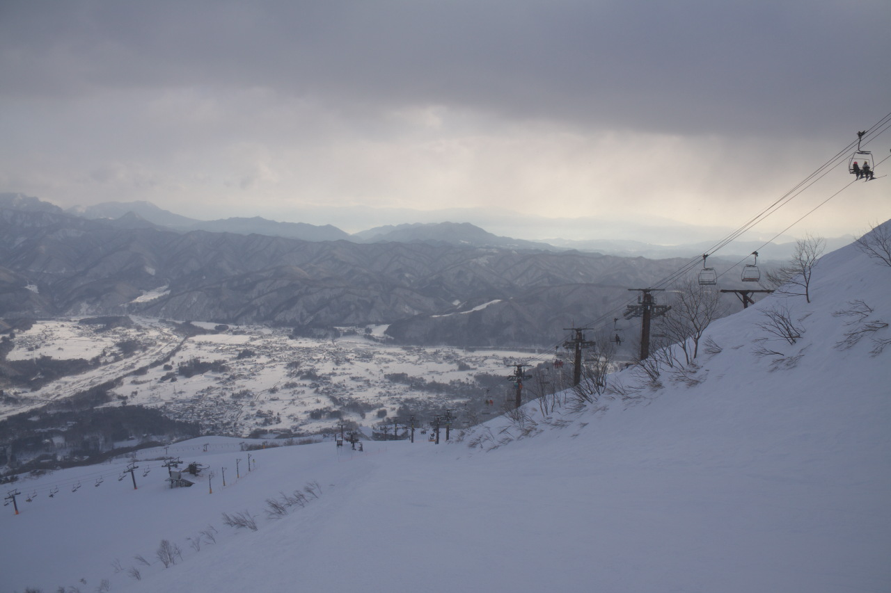 一番上のリフトに乗っていると、途中で4回も強風で止まった。最終的には運行中止になってしまった。 一番上だけでなく、半分より上はかなりの霧で視界不良だ。