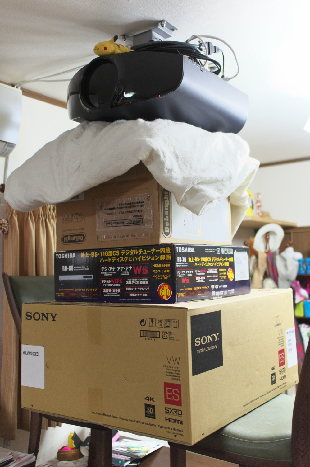 VPL-VW1000ES(amazon)をアップデートに出すために、天井から降ろす。