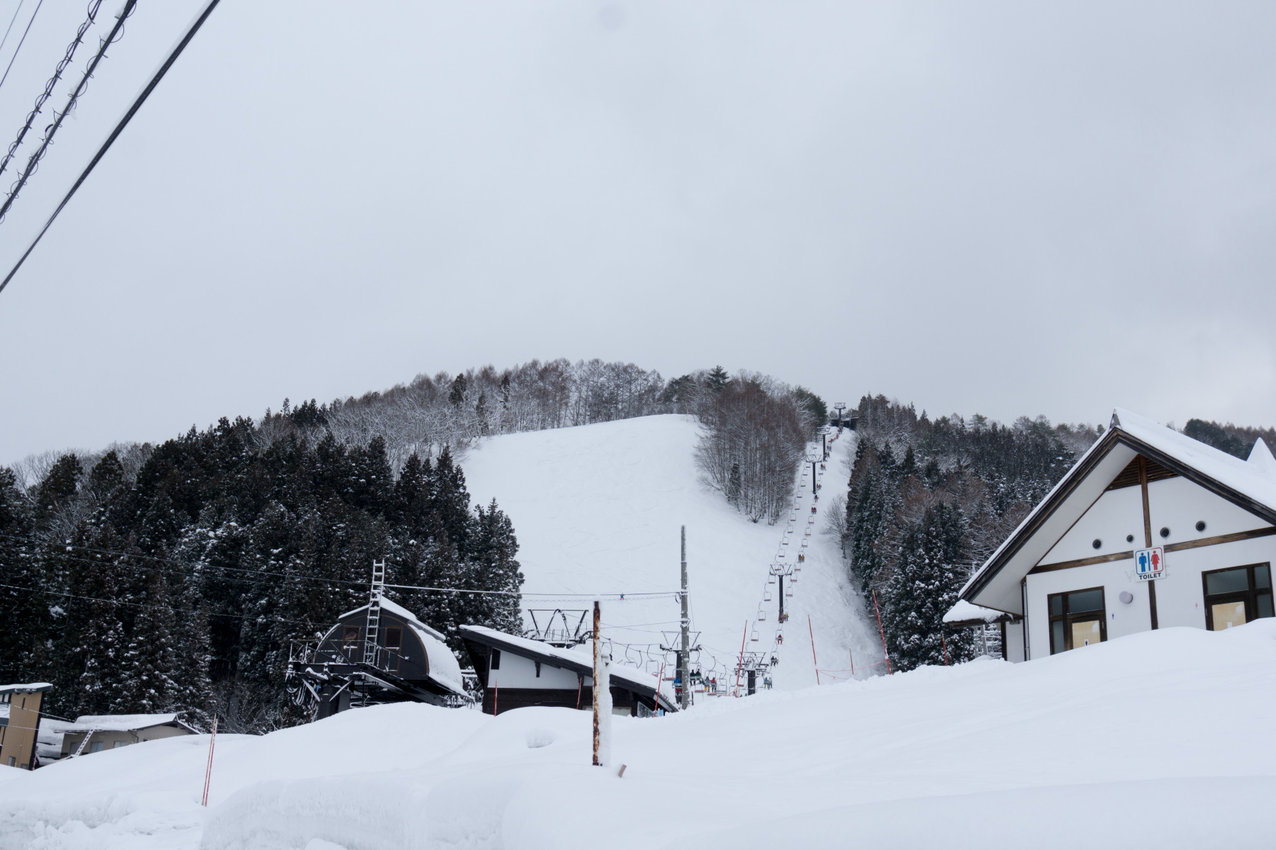 スキー開始。上の方はガスが出ていて、状況はあまり良くないけど滑る。