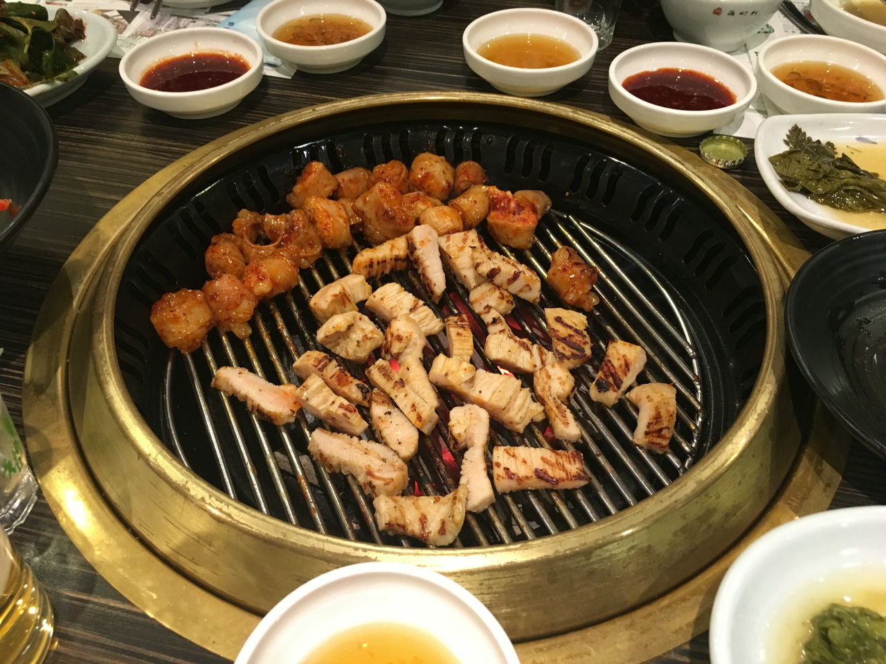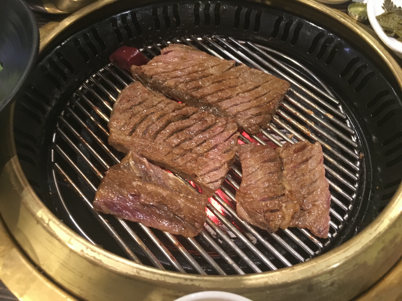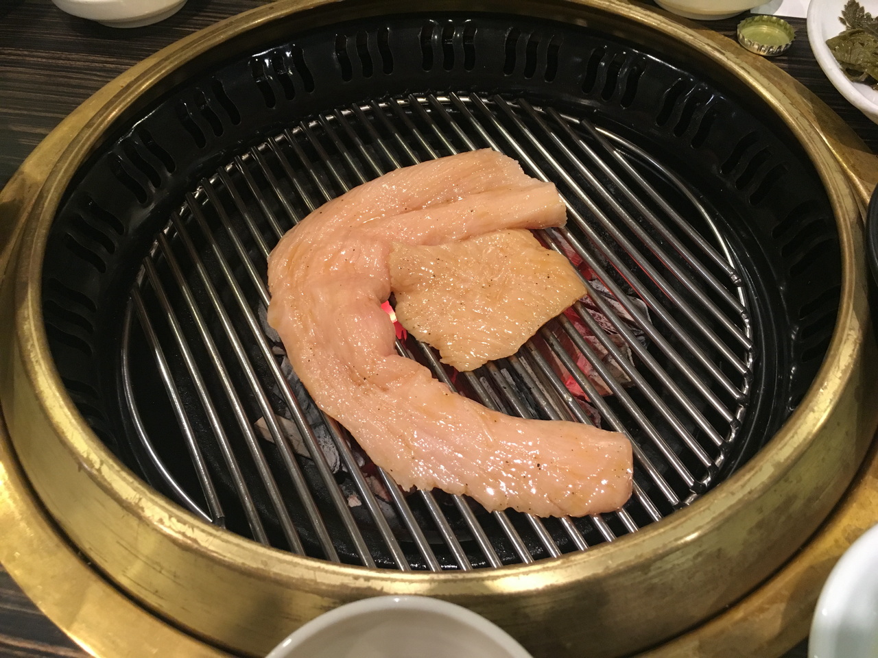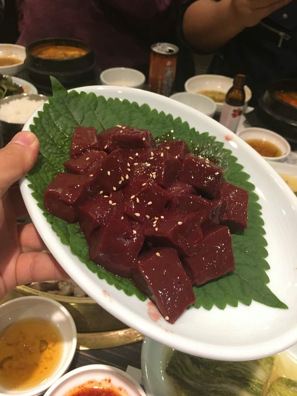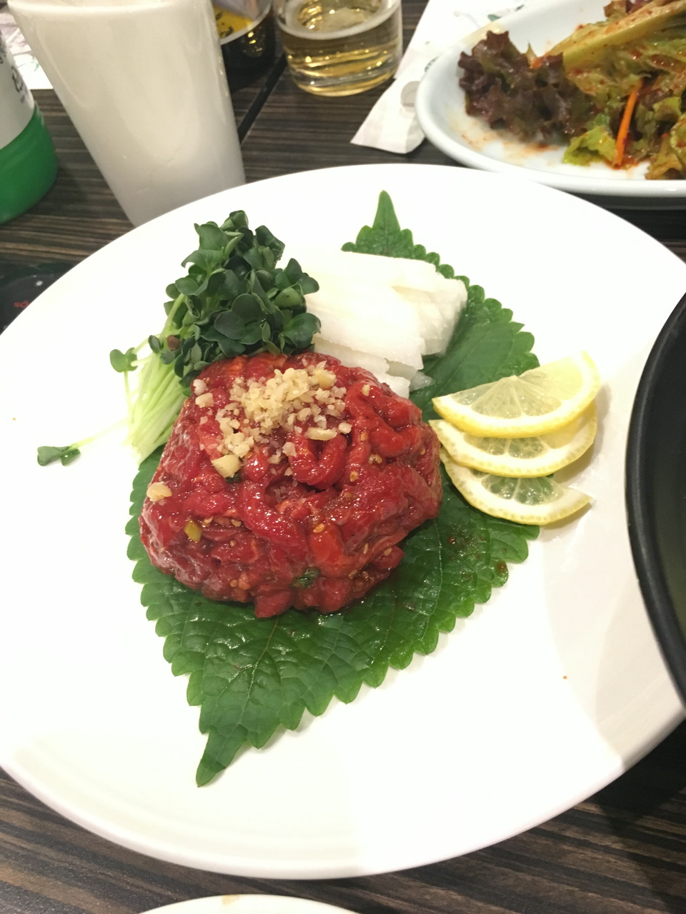 というわけで、焼肉。 生レバー、ユッケなども食べる。生レバーがキューブ状なのに驚く。