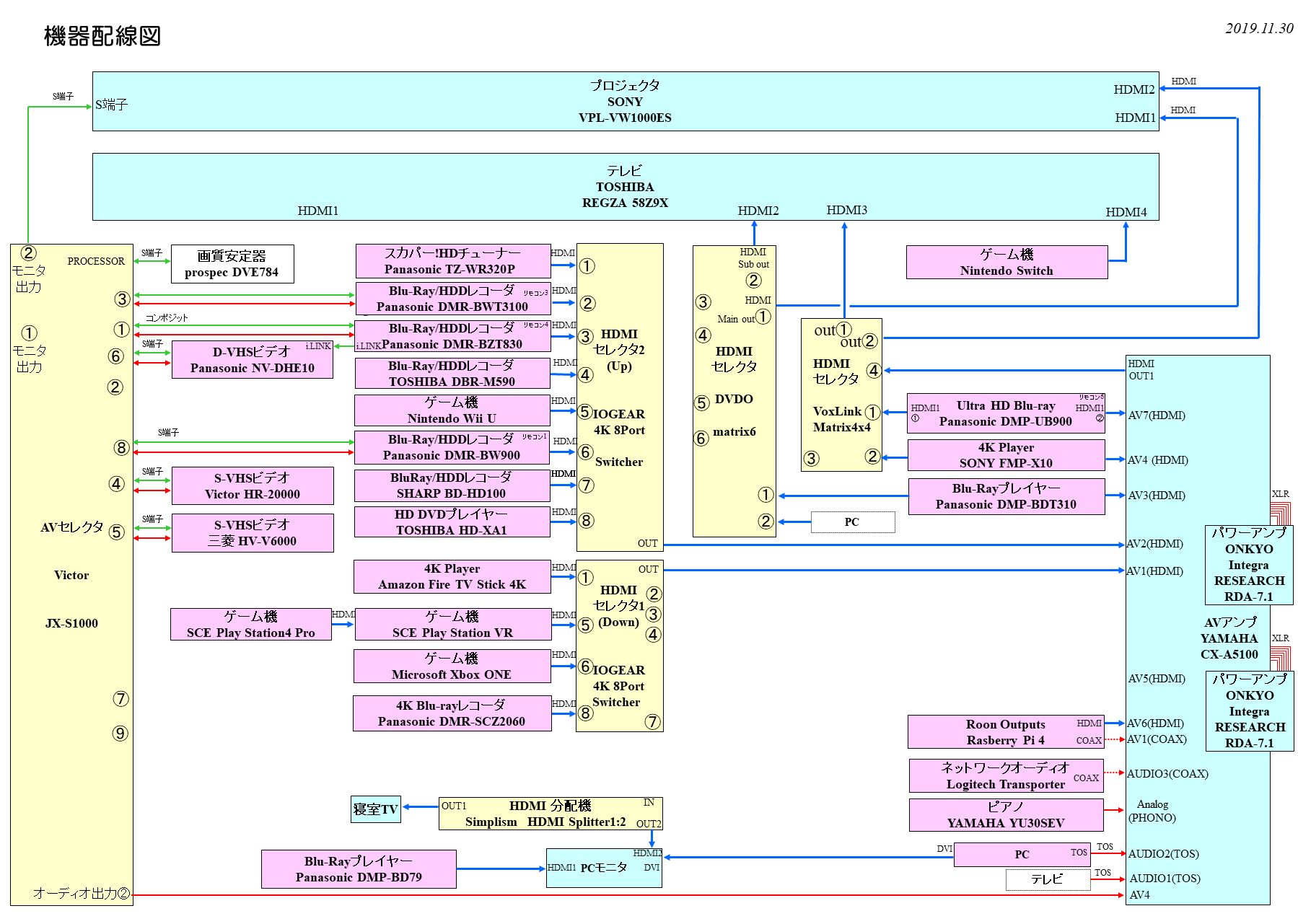 IOGEAR 4K 8-Port Switcher with HDMI (GHSW8481)を追加して、AV機器の配線整理をした。