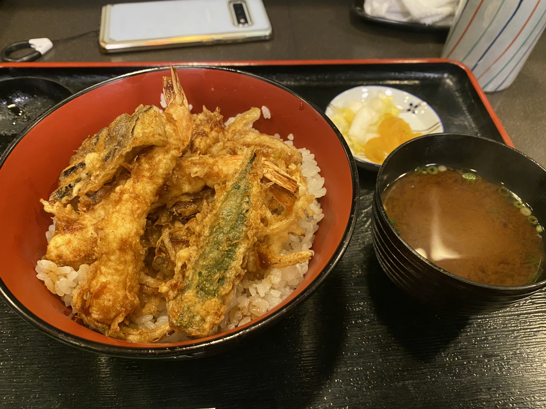 小牧に到着。 名古屋飯ではないけど「天ぷら なが田」で天丼。