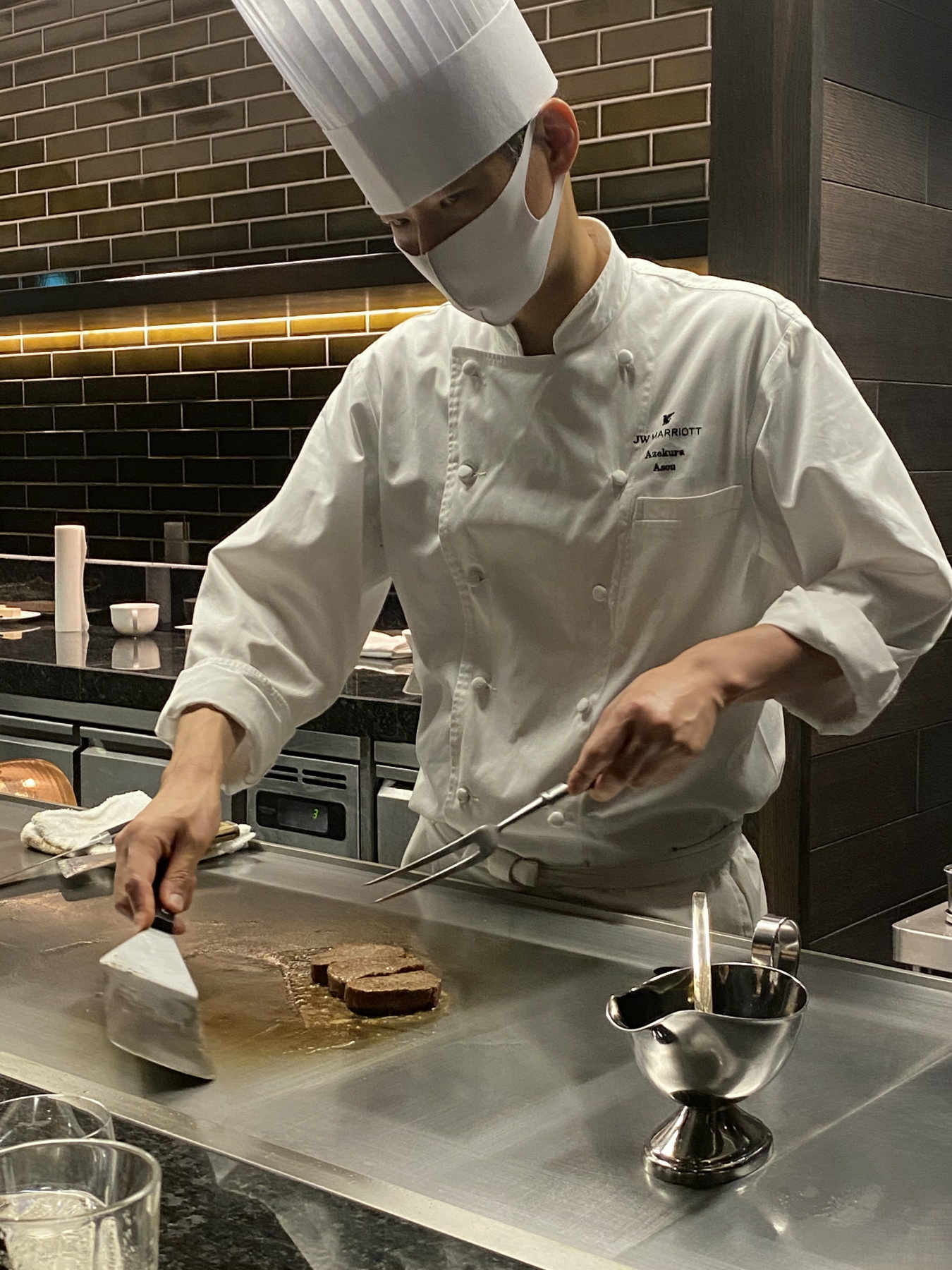 ランチはホテルの鉄板焼き。