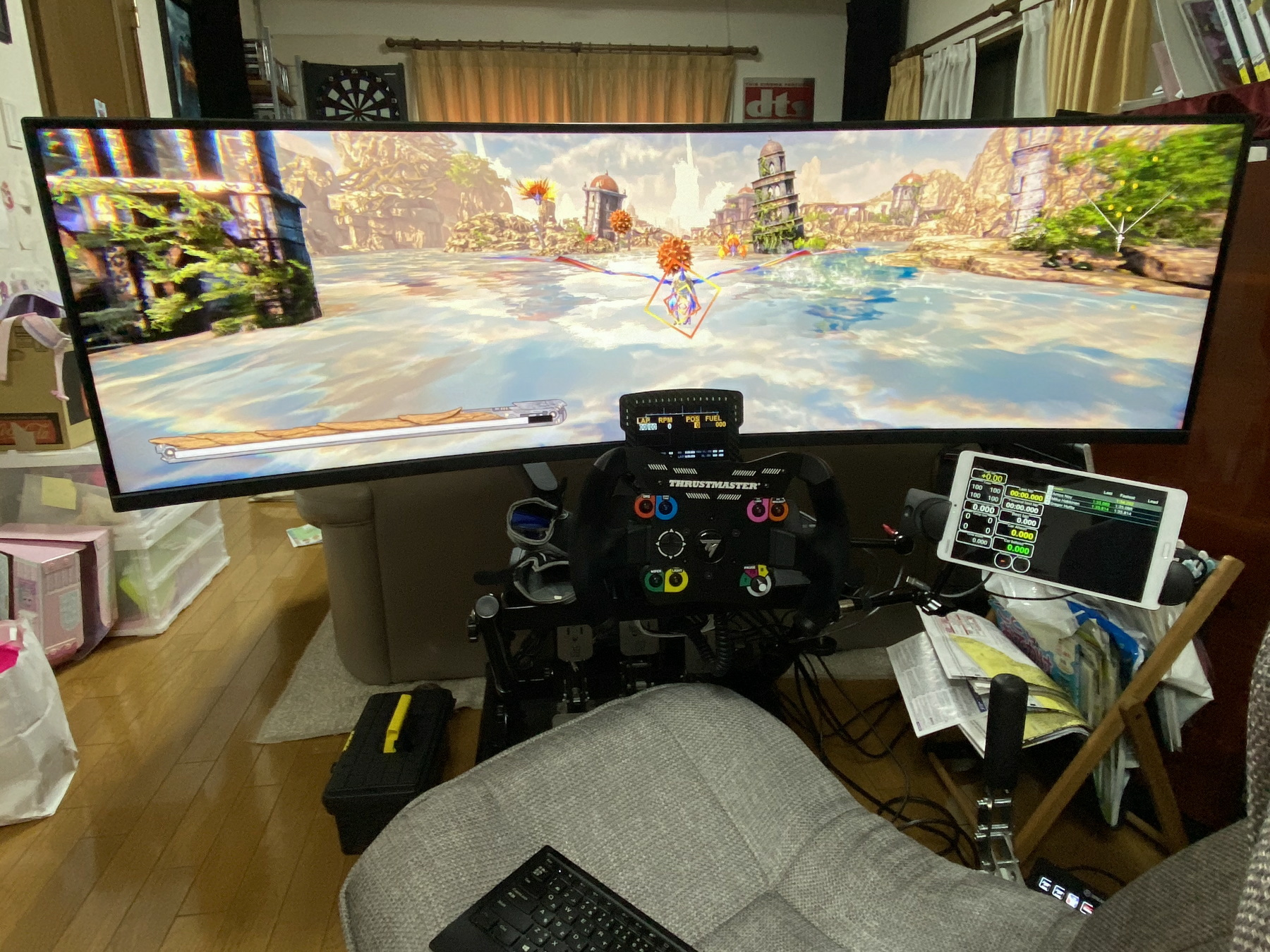 32:9モニタにも対応していて、ゲーム中は横に拡がっている(ムービーは上下をトリミングされてしまう)。 なお、ハンコンには対応しておりませんw