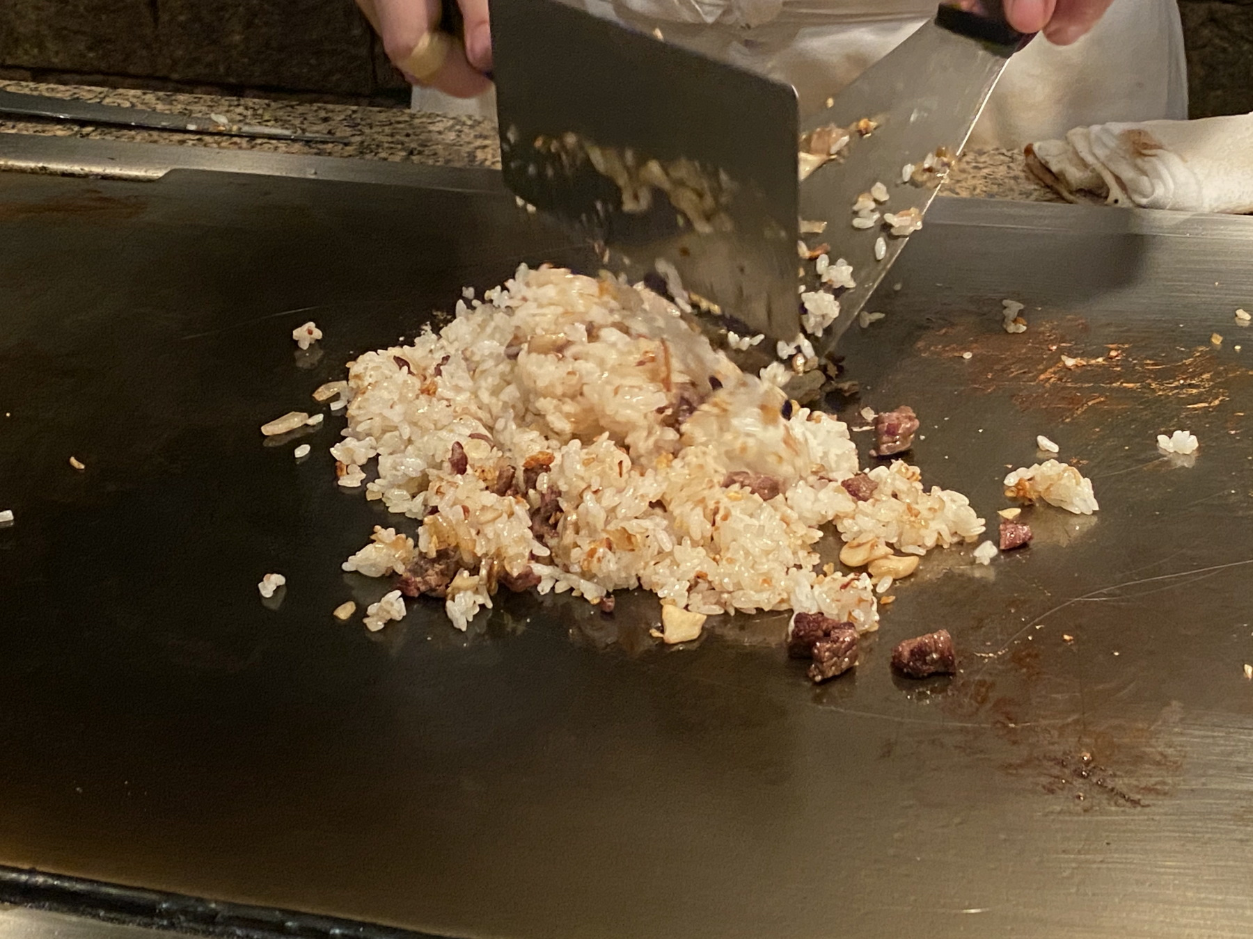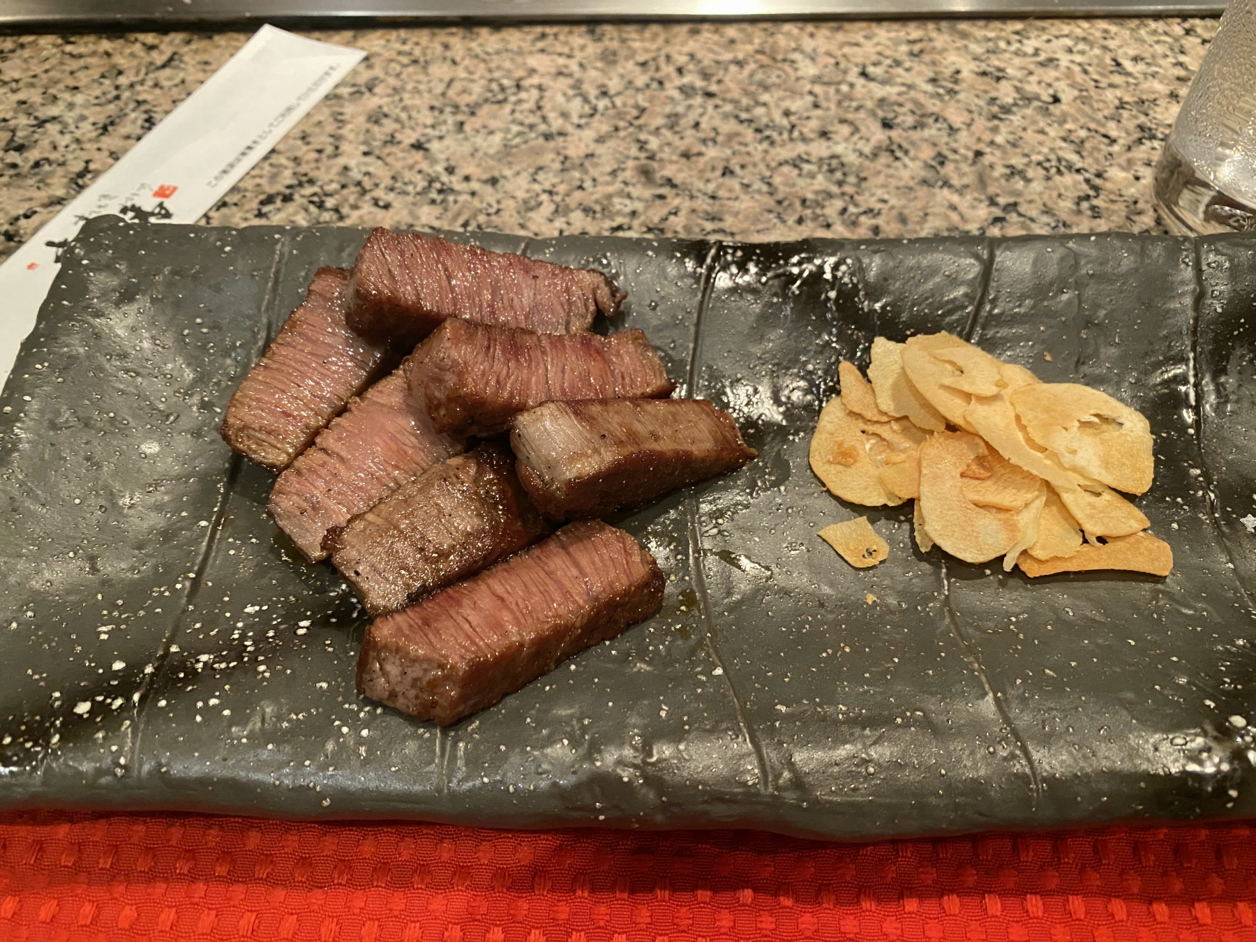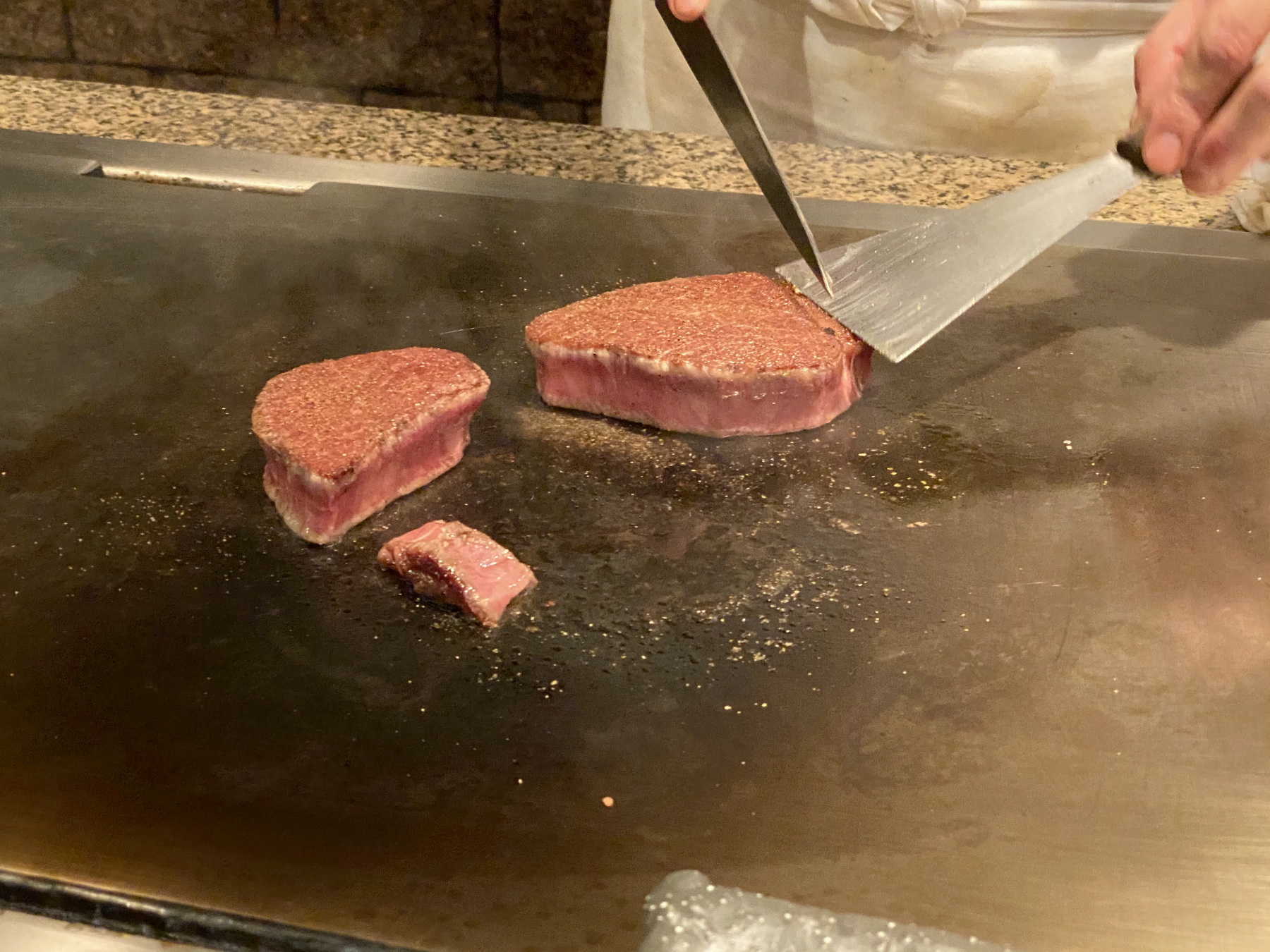 GOTO EATチケットを使うために、鉄板焼きのステーキを食べる。