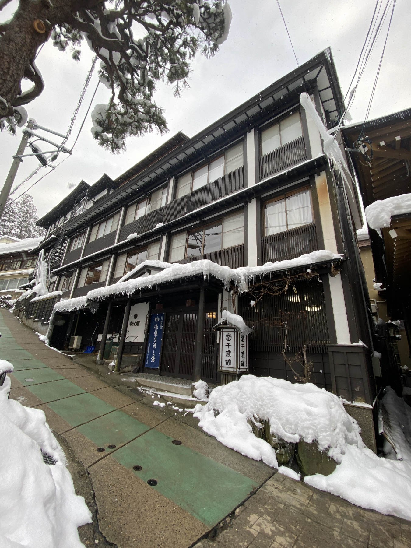 野沢温泉スキー。 まずは宿の千歳館へ。