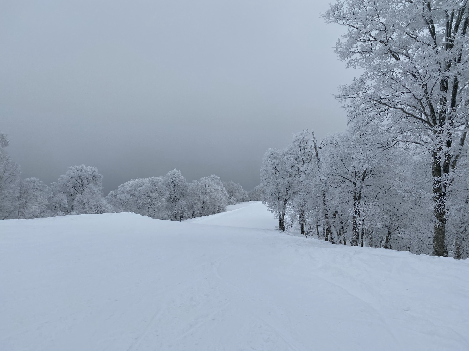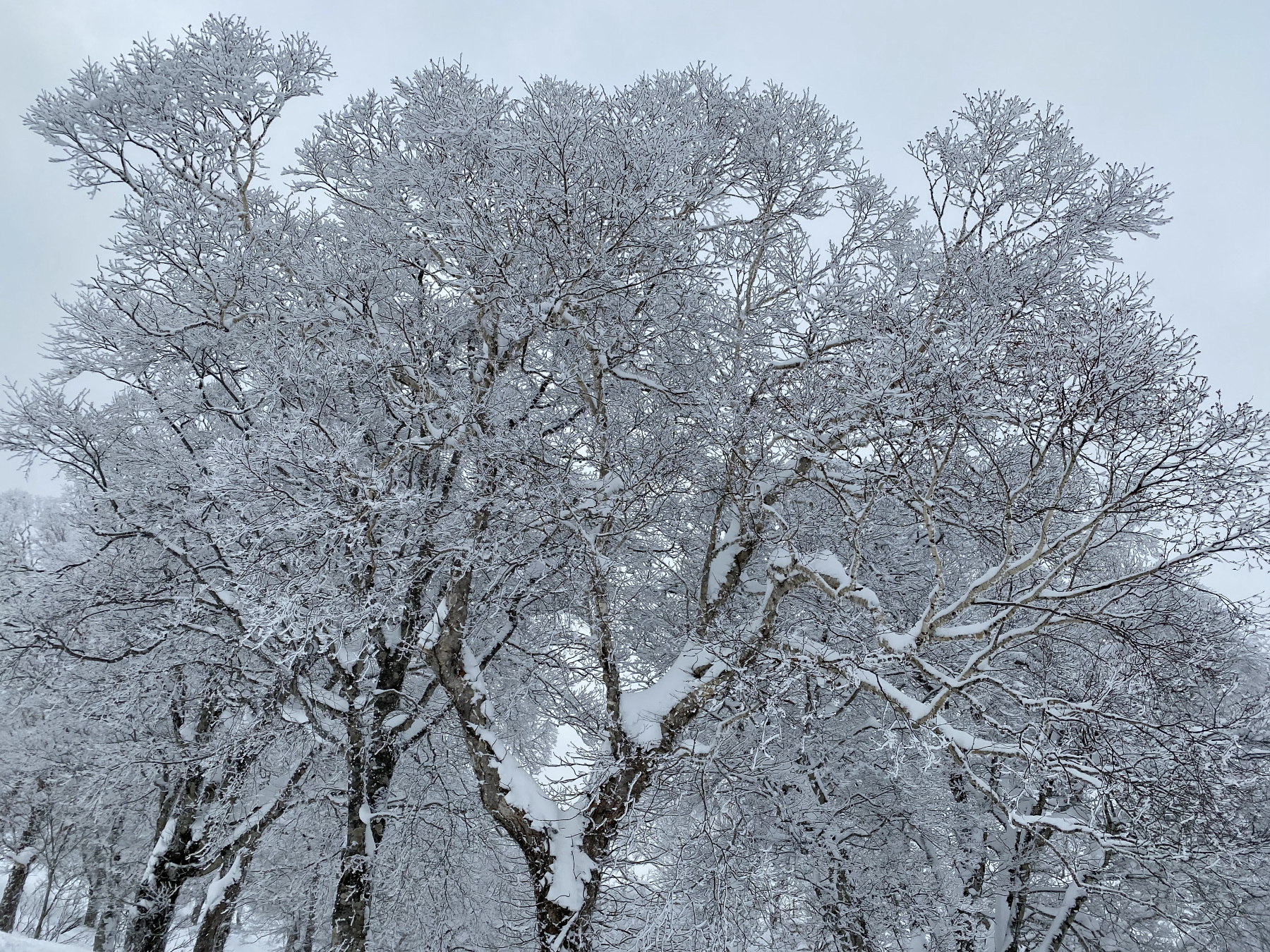 今日はずっと曇りで、樹氷みたいになっている。